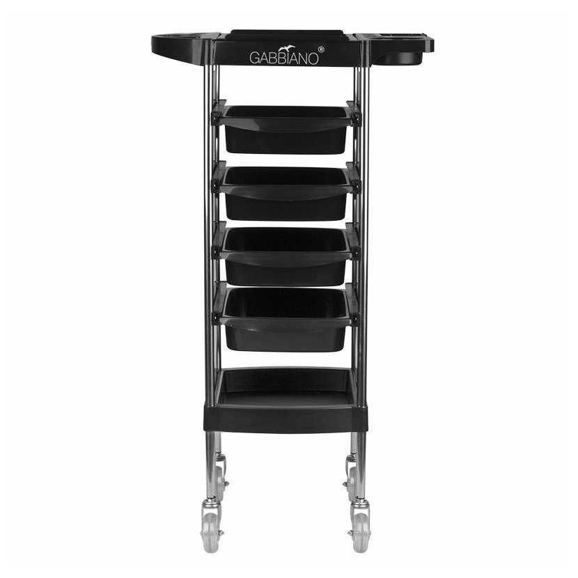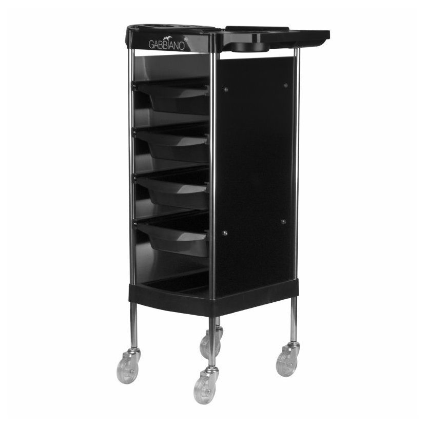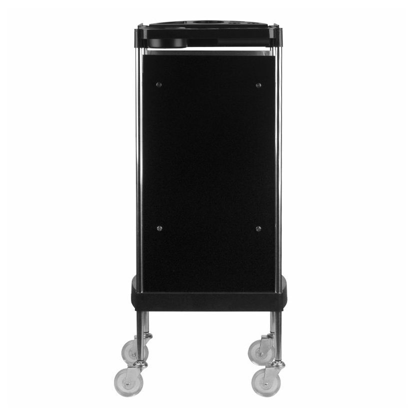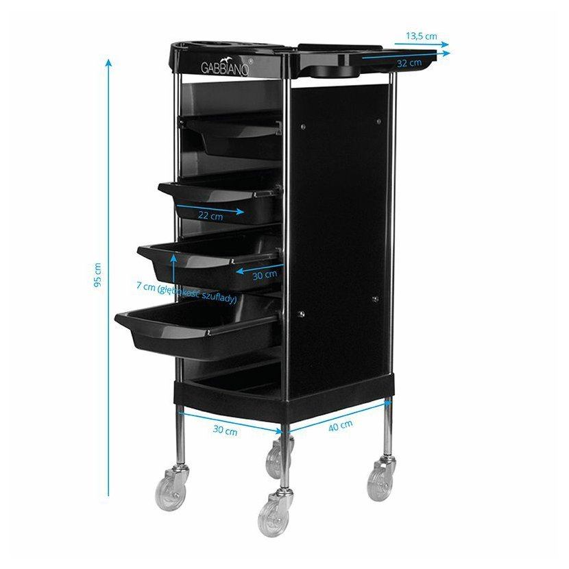 Odkládací stolek je vyroben z odolného plastu ABS s ocelovou rámovou konstrukcí zajišťující vysokou stabilitu a odolnost. Stolek je opatřen gumovými kolečky, takže je mobilní a snadno se s ním manipuluje. Speciální kola minimalizují namotávání vlasů do koleček. Zásadně tak prodlouží životnost stolku. 4 výsuvné zásuvky a vrchní členěná deska vám poskytují úložný prostor pro vaše profesní pomůcky. Pod zásuvkami máte další prostor pro uložení objemnějšího pracovního nástroje.