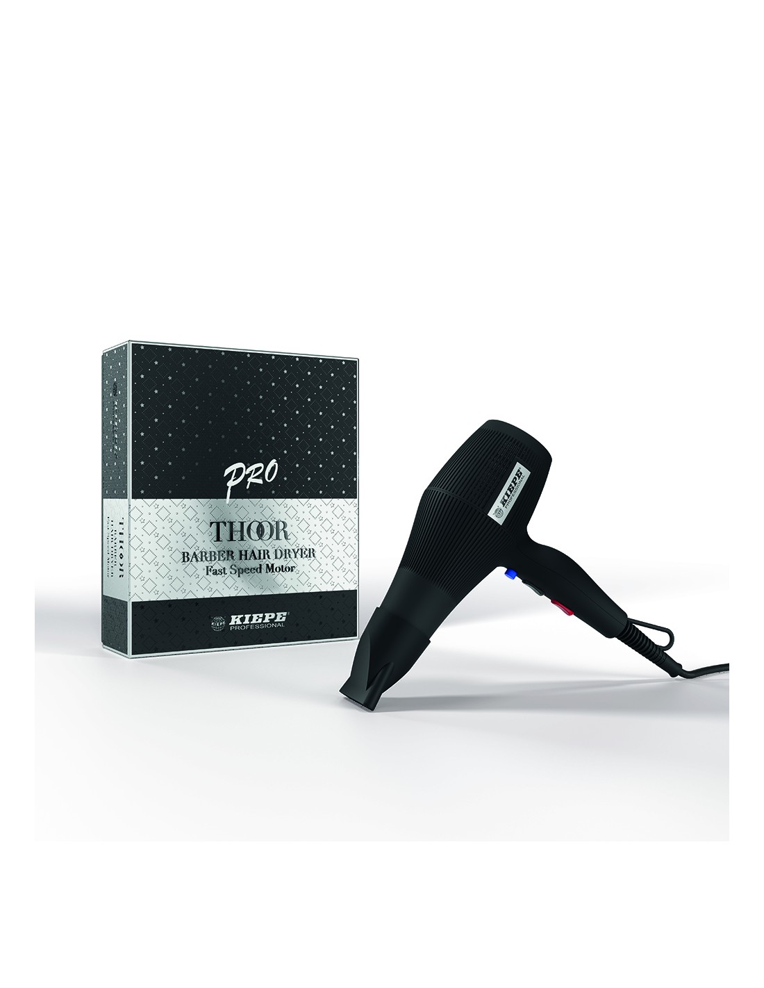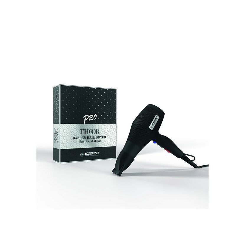 Kiepe Thoor Barber Hairdryer je profesionální fén nové generace s vynikajícím výkonem a všestranností. Fén má digitální motor (1800 - 2200 W) a poskytuje výkonný proud vzduchu, který usnadňuje práci a urychluje sušení vlasů. 2 rychlosti a 3 teplotní stupně umožňují přizpůsobení rychlosti a teploty proudění vzduchu, fén je tedy vhodný pro úpravu všech typů vlasů. Tlačítko Cool Touch poskytuje okamžitý proud studeného vzduchu, díky kterému je jednodušší fixace účesu a ochlazení vlasů po stylingu. Fén má pouhých 490 g a je snadno ovladatelný.