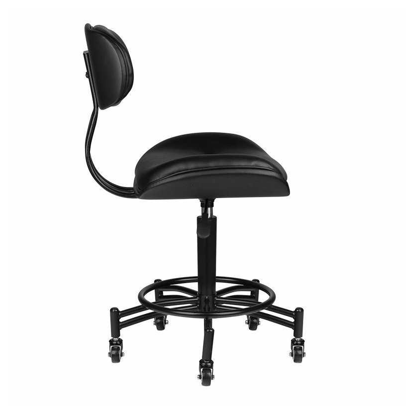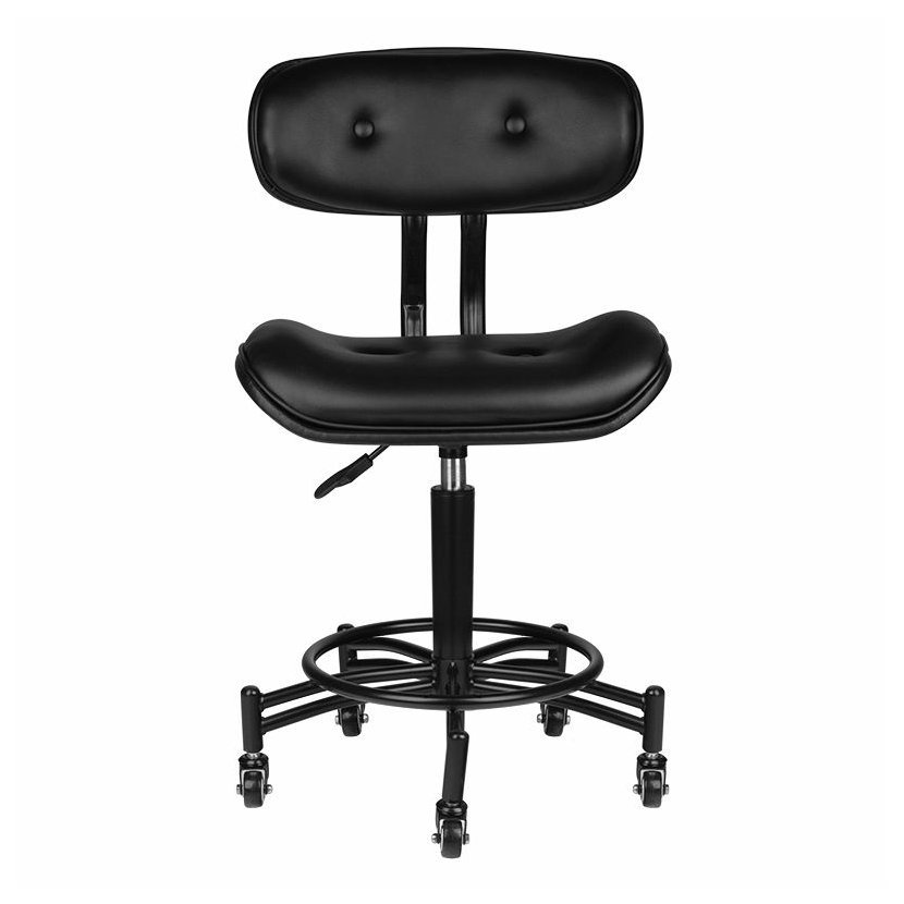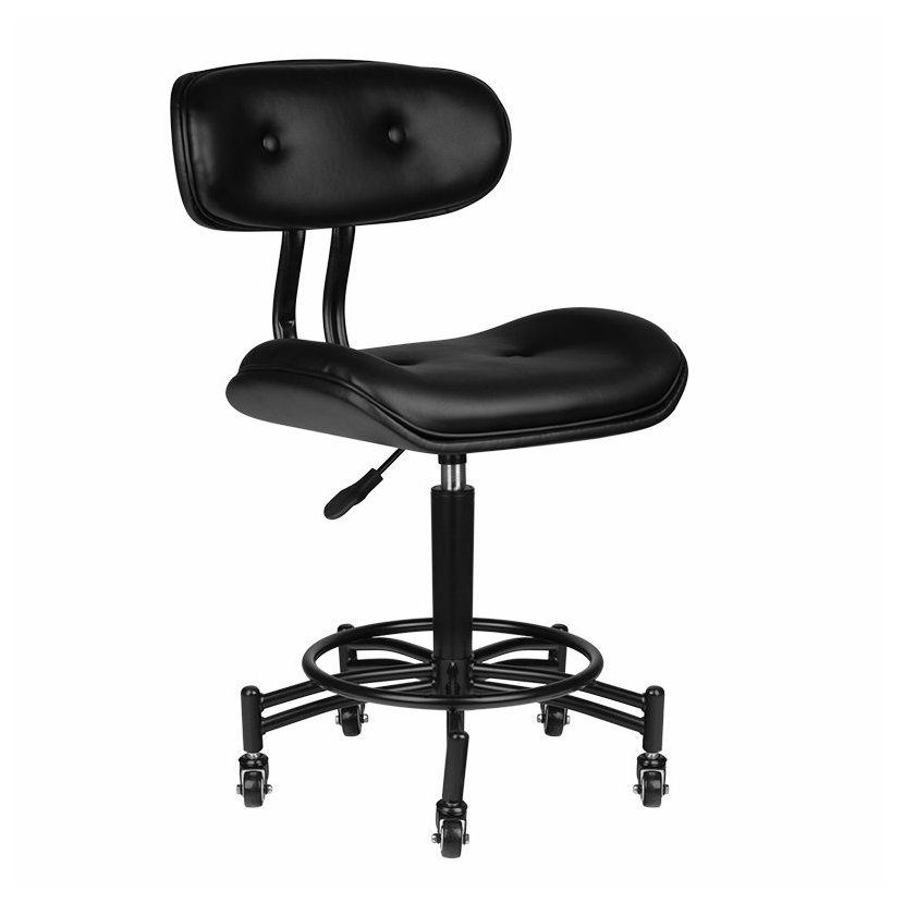Pohodlná stolička ze série Florence, ideální pro kadeřnictví, tetovací studio nebo kosmetické salony. Křeslo je vybaveno černou pětihvězdičkovou základnou na kolečkách. Kosmetický taburet je potažen velmi odolnou, matnou ekokůží. Je osazen gumovými koly a má píst pro nastavení výšky. Samozřejmostí je opěradlo, které dělá s taburetu nezbytného pomocníka pro zdraví Vašich zad.