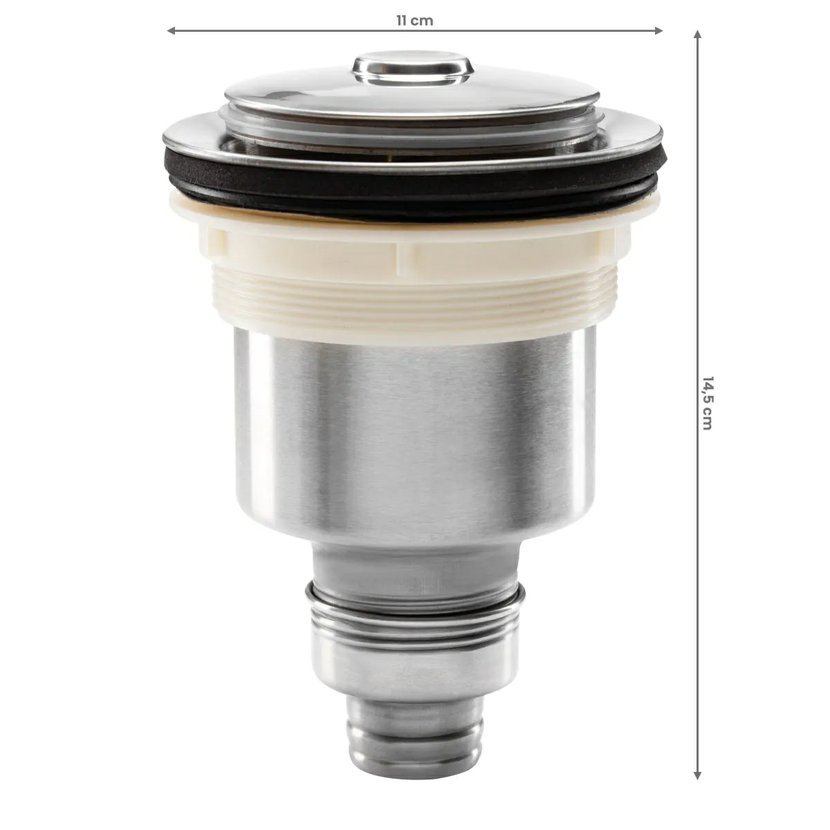 Sada obsahuje kovový odtok + koš na vlasy + vypouštěcí zátku + těsnění