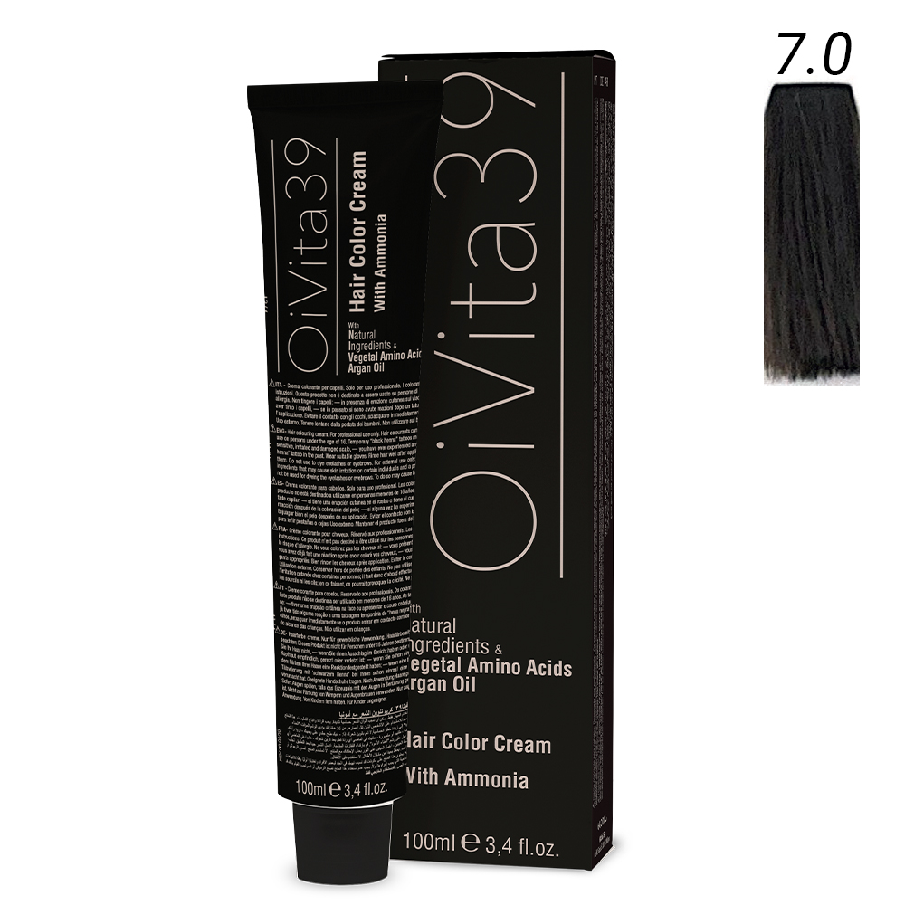 OiVita39 Hair Color Cream with Ammonia 7.0 - Profesionální krémová barva na vlasy s amoniakem 100 ml