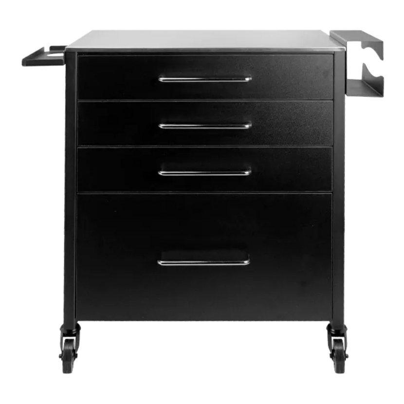 Pro Ink 702 tetovací asistent pro skladování tetovacího vybavení. Díky robustní ocelové konstrukci zaručuje dlouhou životnost. Dřevěné zásuvky a chromované úchyty dodávají elegantní vzhled. Hliníková horní deska zajistí čistotu při práci s pigmenty. Tři malé zásuvky a jedna velká prostorná skříňka pojmou vybavení, příslušenství a mnoho dalšího. Vše, co potřebujete během sezení, uspořádáte na jednom místě. Díky pogumovaným kolečkům (s brzdami) se skříňka i přes svou hmotnost snadno přemisťuje.