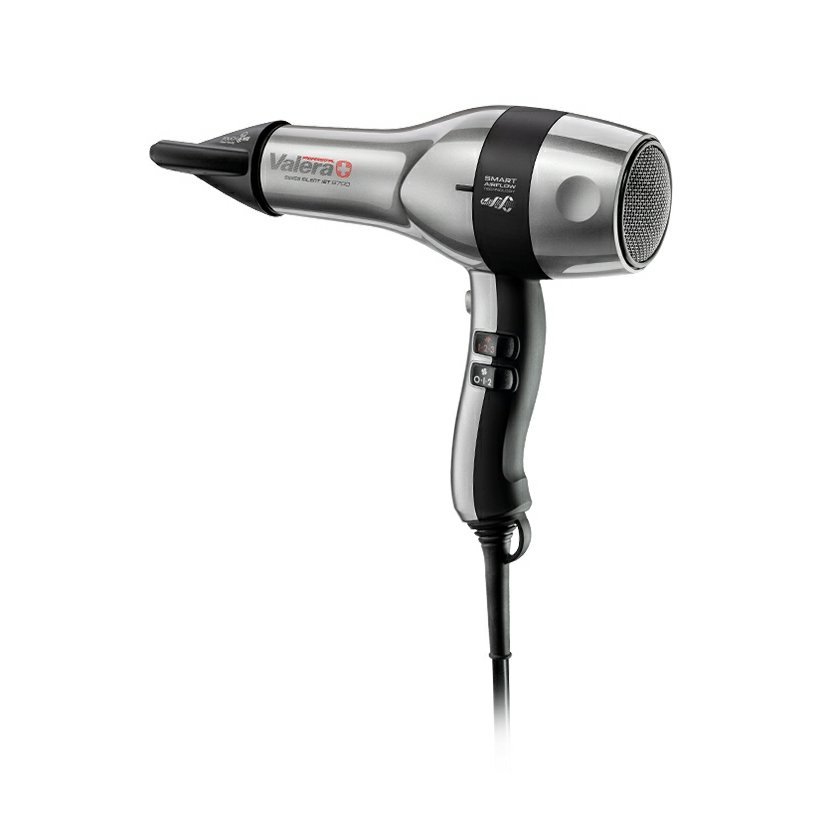 Profesionální fén Valera Swiss Silent Jet 8700 Ionic se skvělým výkonem a nízkou hlučností. Dlouhou životnost a vynikající výkon zajišťuje motor AC Performance, zatímco technologie Smart Airflow od společnosti Valera zaručuje minimální hlučnost. Fén má ionizační schopnost, díky které jsou vlasy chráněné před případným poškozením a zabraňuje nevyžádanému elektrizování. Vlasy jsou díky generátoru iontů regenerované, hydratované, lépe se rozčesávají, jsou jemnější a lesklejší. Fén je dále vybaven systémem dezinfekce vzduchu. ColorCare chrání vlasy během vysoušení před poškozením, vysušením, ztrátou intenzity barvy a lesku. Fén je také vybaven 360° otočným kabelem, díky kterému je práce a manipulace ještě jednodušší. Technologie inteligentního proudění vzduchu Smart Airflow. Pomocí pokročilého softwaru pro simulaci proudění vzduchu společnost Valera vyvinula technologii Smart Airflow, která optimalizuje a kompresuje vnitřní proudění vzduchu, aby eliminovala nežádoucí tření a rozptyl. Tím je zajištěn maximální výkon při minimální hlučnosti.