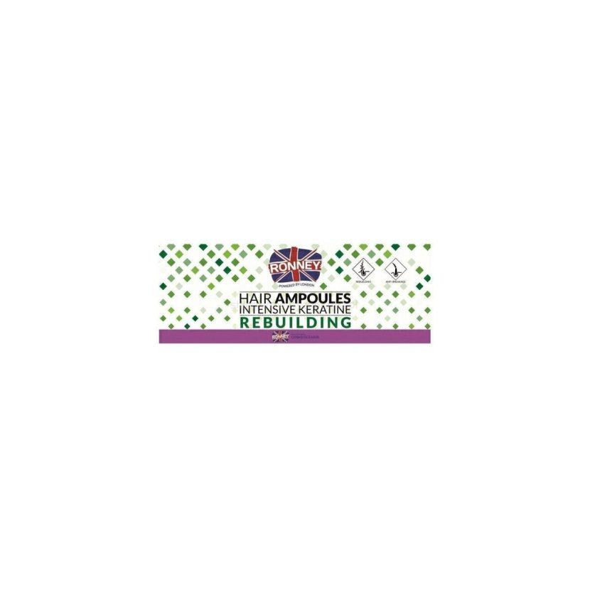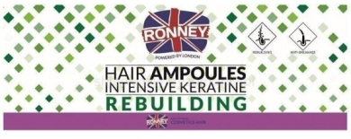 Ronney Hair Ampoules Intensive Keratine Rebuilding jsou keratinové ampule proti lámání vlasů. Obnovují vlasovou strukturu a dodávají jí lesk. Keratinová složka brání lámání vlasů a usnadňuje česání.