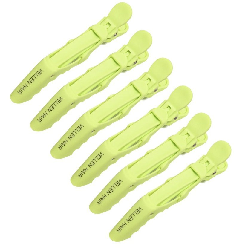 Balení 6 ks vysoce kvalitních krokodýlových spon do vlasů ze speciálního pogumovaného protiskluzového materiálu v zelené barvě.