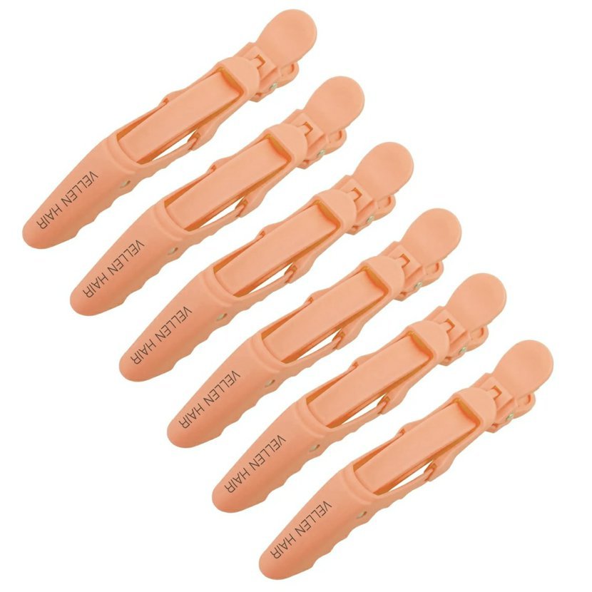 Balení 6 ks vysoce kvalitních krokodýlových spon do vlasů ze speciálního pogumovaného protiskluzového materiálu v broskvové barvě.