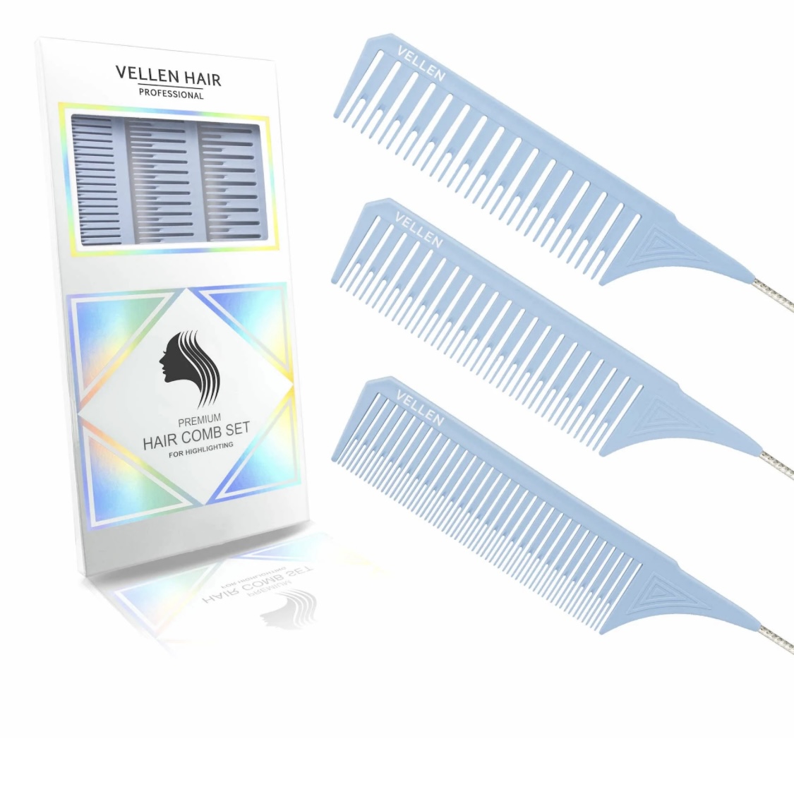 Patentovaný Vellen Hair Ultimate Highlighting Comb snižuje váš pracovní čas až o 1,5 hodiny! Dodává se ve 3 velikostech s přizpůsobeným rozestupem zubů a oddělením linií. Extra dlouhý hrot z nerezové oceli, lehký design a pohodlná rukojeť, která se nesmeká při držení. Statické plastové materiály ULTEM pomáhají předcházet vzniku statické energie a krepatění. Navržen s postupně klesajícím sklonem, hřeben usnadňuje rovnoměrné napnutí vlasů a pomáhá vytvářet dokonalé oddělení vlasových partií.