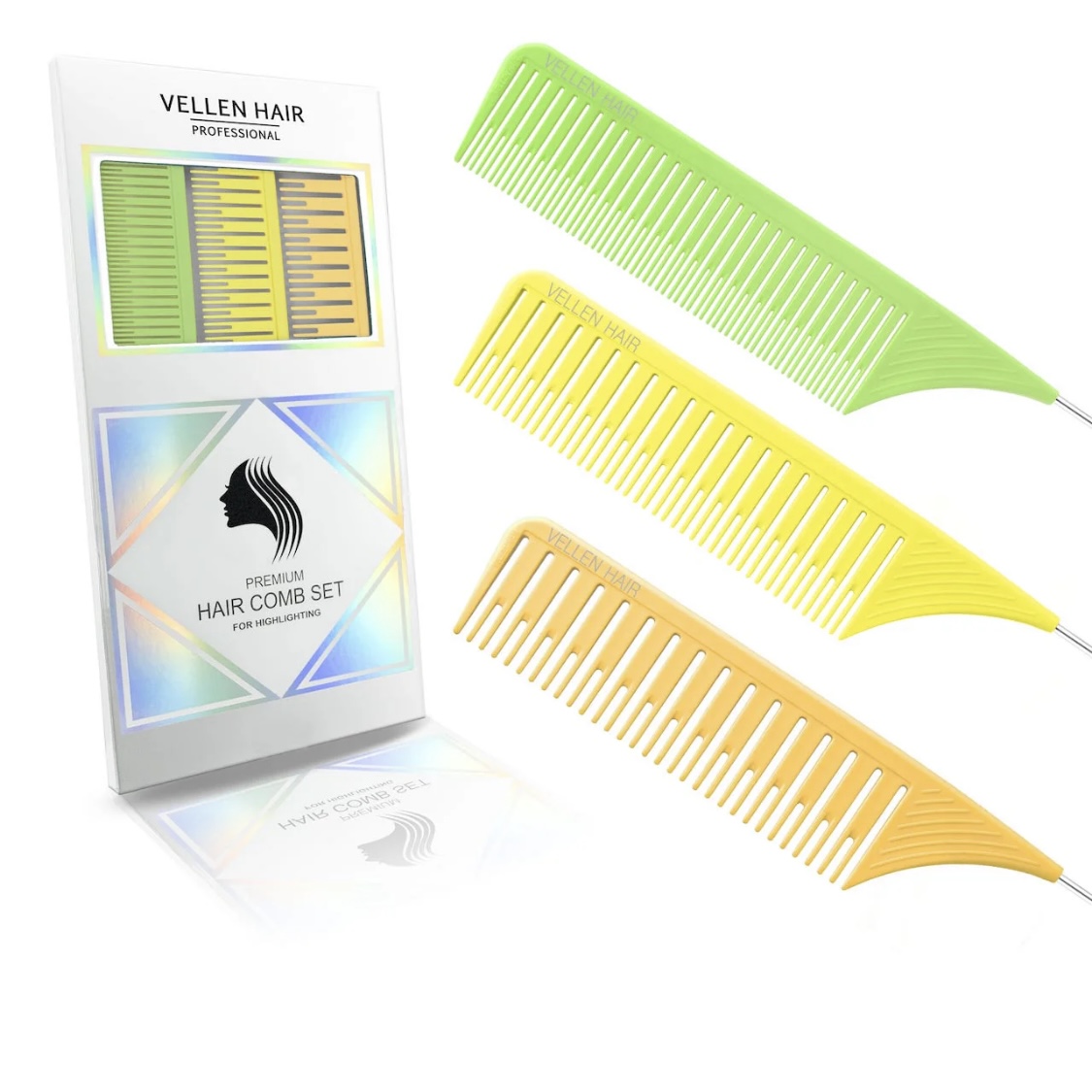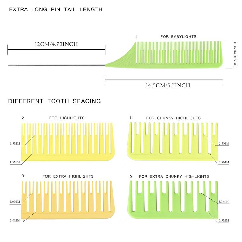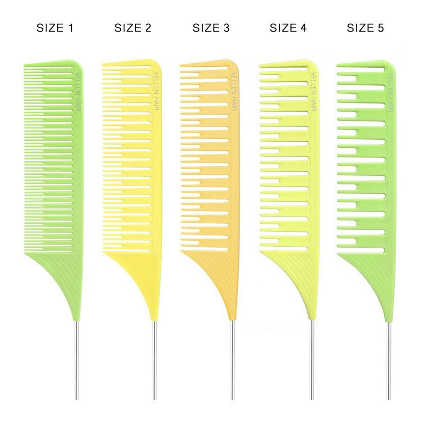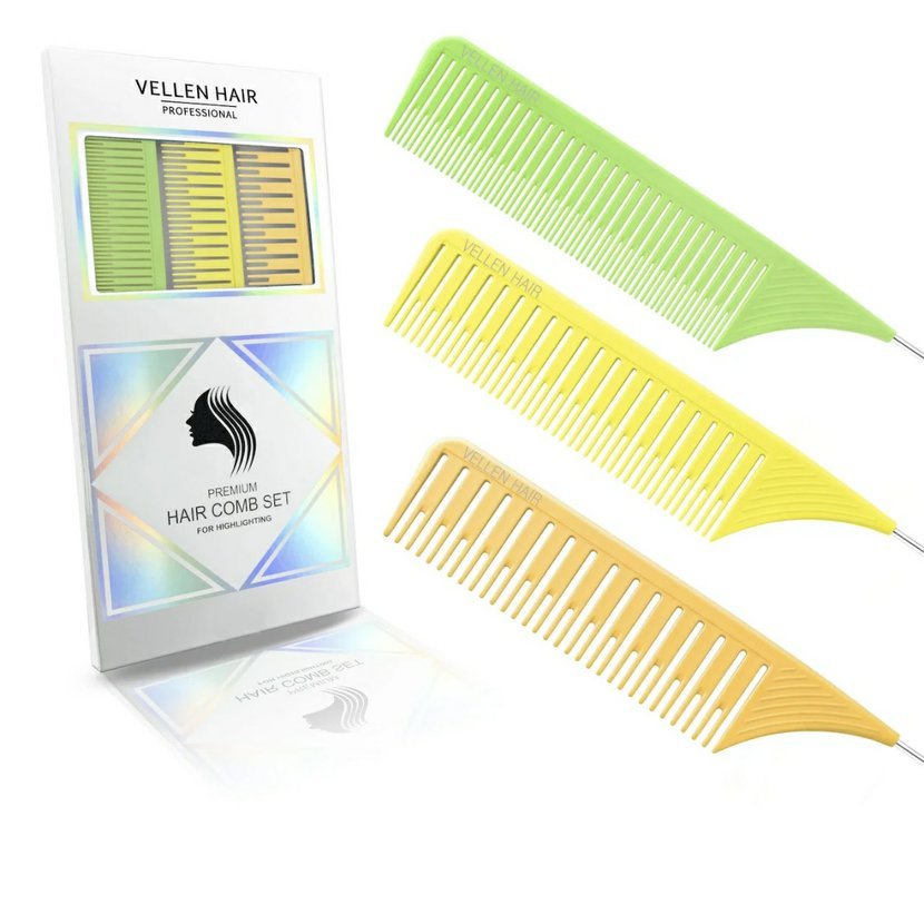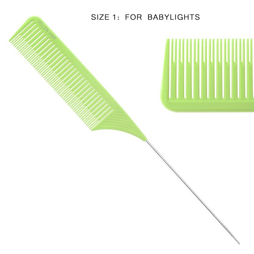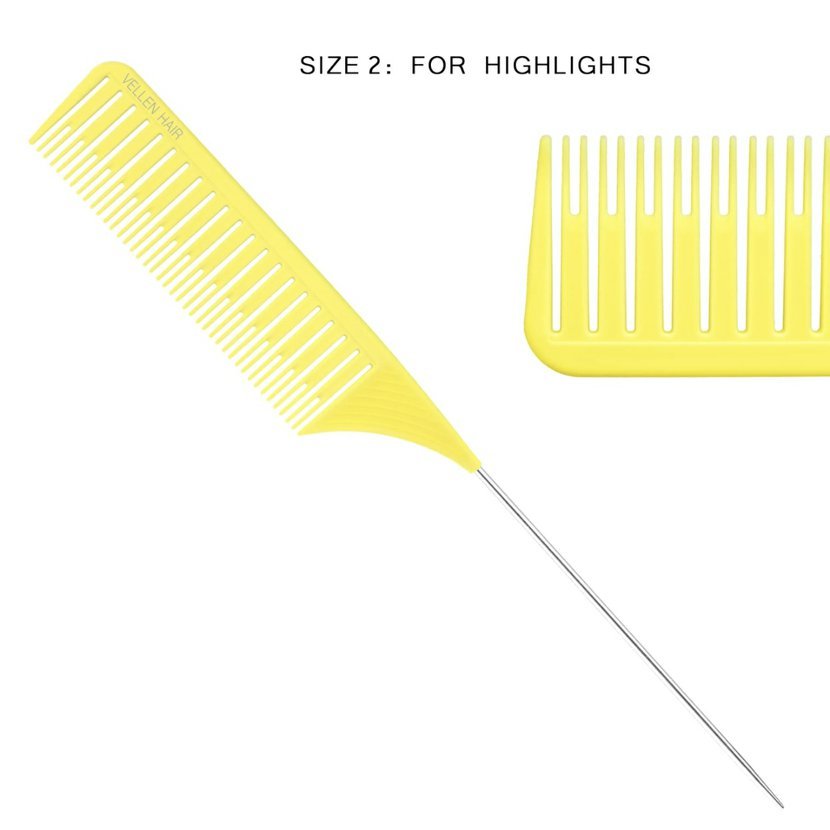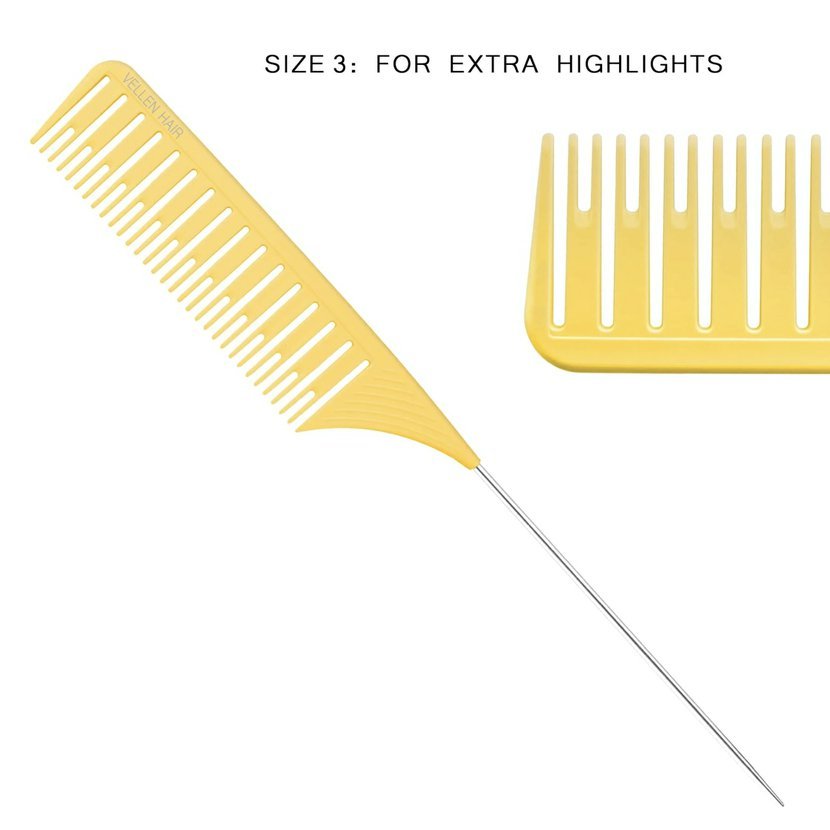 Patentovaný Vellen Hair Ultimate Highlighting Comb snižuje váš pracovní čas až o 1,5 hodiny! Dodává se ve 3 velikostech s přizpůsobeným rozestupem zubů a oddělením linií. Extra dlouhý hrot z nerezové oceli, lehký design a pohodlná rukojeť, která se nesmeká při držení. Statické plastové materiály ULTEM pomáhají předcházet vzniku statické energie a krepatění. Navržen s postupně klesajícím sklonem, hřeben usnadňuje rovnoměrné napnutí vlasů a pomáhá vytvářet dokonalé oddělení vlasových partií.