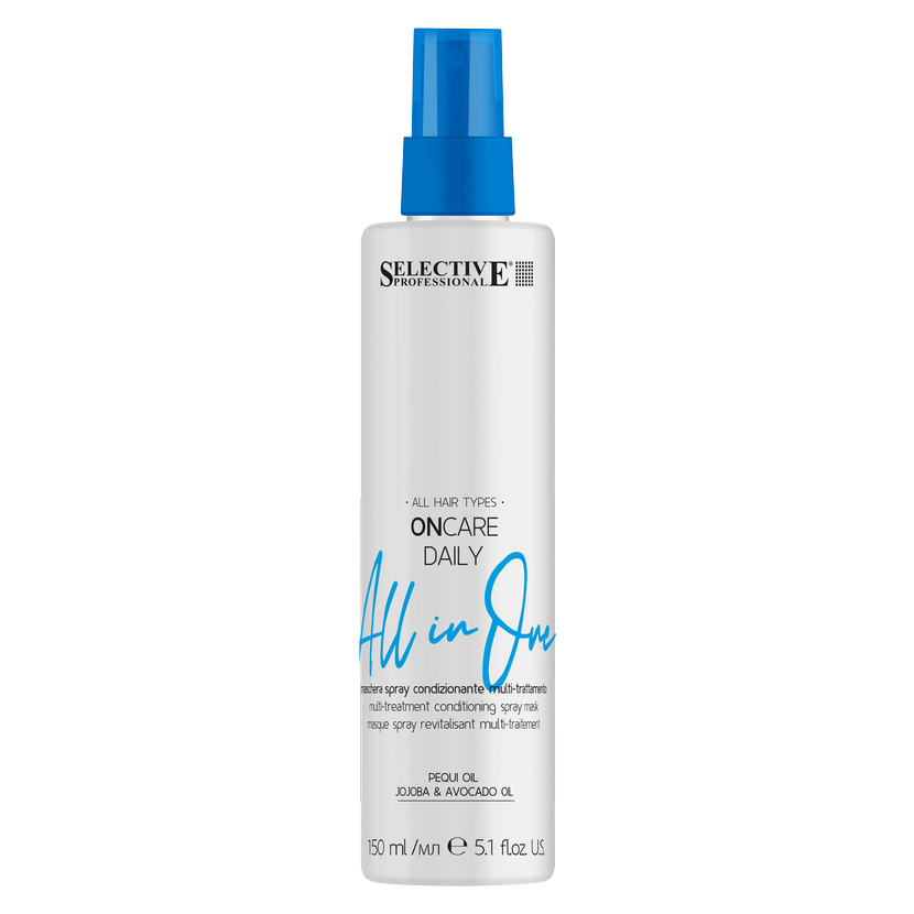 Značka Selective Professional představuje bezoplachovou víceúčelovou masku ve spreji pro ošetřené všech druhů vlasů. Maska 15v1 obsahuje 15 různých výhod v jediném produktu: opravuje poškozené vlasy, zabraňuje třepení konečků, účinně vyživuje, hydratuje suché vlasy, chrání před UV zářením. Dodává objem, měkkost a hedvábnost. Uhlazuje kutikulu a odstraňuje krepatění, chrání před teplem. Usnadňuje použití fénů, žehliček a prodlužuje životnost stylingu. Zanechává vlasy lesklé a vitální. Obsahuje brazilský pequi olej, avokádový a jojobový olej, sluneční filtr, extrakt moringy a panthenol.