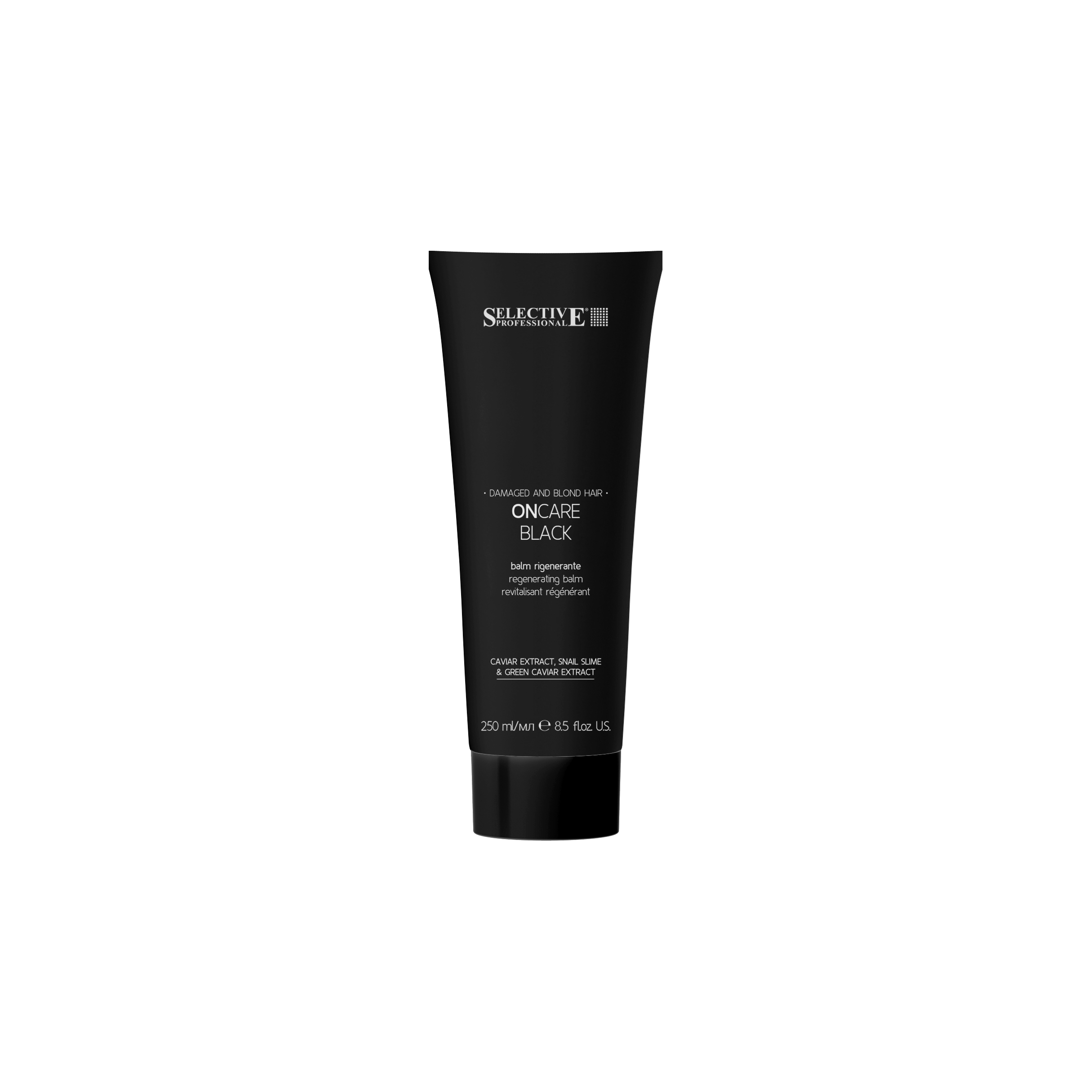 Značka Selective Professional představuje regenerační balzám s kaviárem a šnečím extraktem pro poškozené, tmavé i blond vlasy. Díky složení založenému na přírodních účinných látkách vlasy hloubkově regeneruje, navrací jim vitalitu, lesk a hebkost. Vyživuje a hloubkově ošetřuje i ty nejtenčí vlasy a zanechává je regenerované, hedvábné a pružné. Výtažek z černého kaviáru s vysoce antioxidačními, vyživujícími a hydratačními vlastnostmi. Výtažek z hlemýždího slizu obnovuje strukturu vlasů a dodává jim pevnost a lesk. Díky obsaženému kolagenu a kyselině glykolové pomáhá obnovovat vlasové vlákno poškozené chemickou nebo tepelnou úpravou, zabraňuje vysušování a zlepšuje hebkost vlasů. Zanechává vlasy regenerované, hedvábné a pružné. Balzám má pižmovou, květinovou sladkou vůni. Nezanechává černý pigment. Prášek z dřevěného uhlí má absorpční a čistící vlastnosti. Pomáhá zbavit pokožku hlavy zbytků produktů, smogu a dalších usazenin. Jeho detoxikační účinky pomáhají udržet vlasy lehké, lesklé a čisté po delší dobu. Výtažek ze zeleného kaviáru je bohatý na polysacharidy a minerály, které udržují vlhkost ve vláknech, udržuje vlasy dlouhodobě hydratované. Vysoká koncentrace omega-3, karotenoidů, vitaminu C a E vlasy hloubkově vyživuje a pomáhá je chránit před oxidačním namáháním a poškozením vlivem prostředí, čímž jim dodává plnost a vyživující účinek.