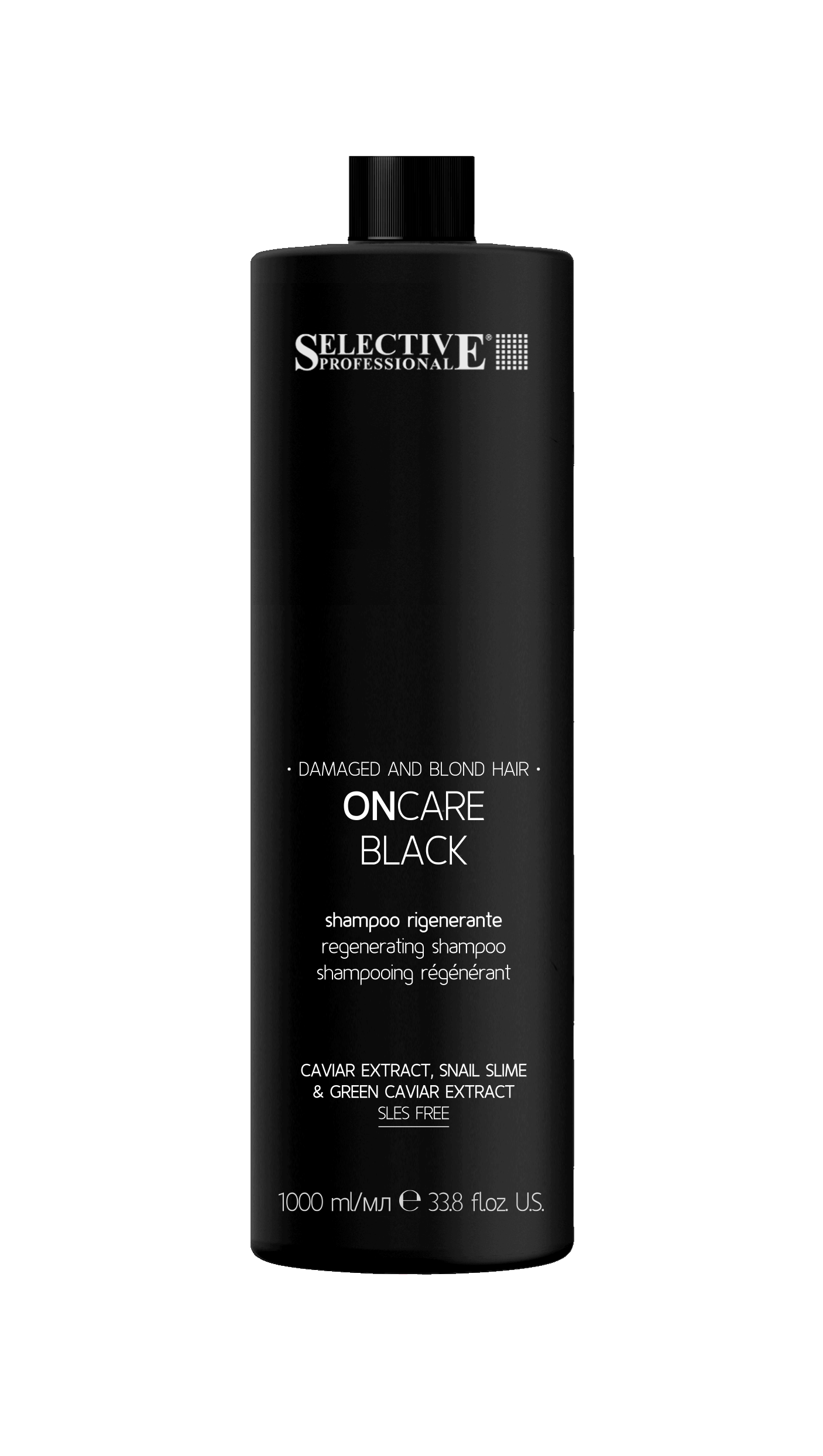 Značka Selective Professional představuje regenerační šampon s kaviárem a šnečím extraktem pro poškozené, tmavé i blond vlasy. Díky složení založenému na přírodních účinných látkách vlasy hloubkově regeneruje, navrací jim vitalitu, lesk a hebkost. Výtažek z černého kaviáru s vysoce antioxidačními, vyživujícími a hydratačními vlastnostmi. Výtažek z hlemýždího slizu obnovuje strukturu vlasů a dodává jim pevnost a lesk. Díky obsaženému kolagenu a kyselině glykolové pomáhá obnovovat vlasové vlákno poškozené chemickou nebo tepelnou úpravou, zabraňuje vysušování a zlepšuje hebkost vlasů. Šampon čistí s celkovým ohledem na vlasové vlákno a obnovuje jeho fyziologickou hydrolipidickou rovnováhu. Zanechává vlasy regenerované, hedvábné a pružné. Oživuje matné vlasy bez tónu. Chrání před oxidačním namáháním. Očišťuje a detoxikuje pokožku hlavy. Šampon má pižmovou, květinovou sladkou vůni. Nezanechává černý pigment. Prášek z dřevěného uhlí má absorpční a čistící vlastnosti. Pomáhá zbavit pokožku hlavy zbytků produktů, smogu a dalších usazenin. Jeho detoxikační účinky pomáhají udržet vlasy lehké, lesklé a čisté po delší dobu. Výtažek ze zeleného kaviáru je bohatý na polysacharidy a minerály, které udržují vlhkost ve vláknech, udržuje vlasy dlouhodobě hydratované. Vysoká koncentrace omega-3, karotenoidů, vitaminu C a E vlasy hloubkově vyživuje a pomáhá je chránit před oxidačním namáháním a poškozením vlivem prostředí, čímž jim dodává plnost a vyživující účinek.