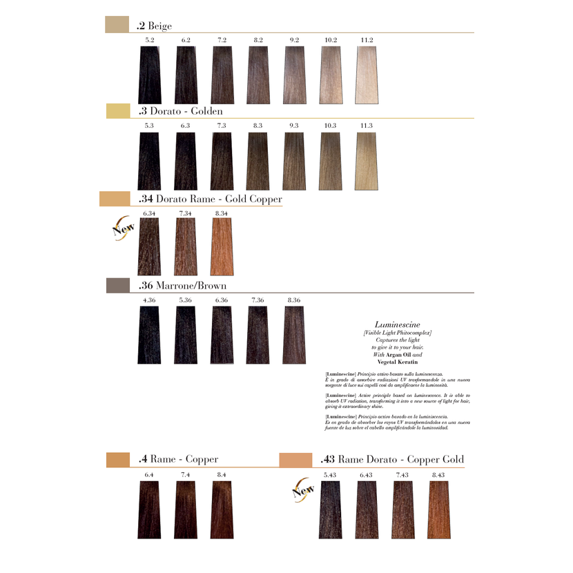 Naprostou novinkou je v kosmetice absolutně revoluční použití účinné složky Luminescin®. Tato molekula poslední generace je látka přírodní povahy, schopná chránit před vysoko energetickým škodlivým zářením a přeměnit je na světelný zdroj, který vyzařují přímo vlasy, díky tomuto jevu získává barva maximální a brilantní lesk.