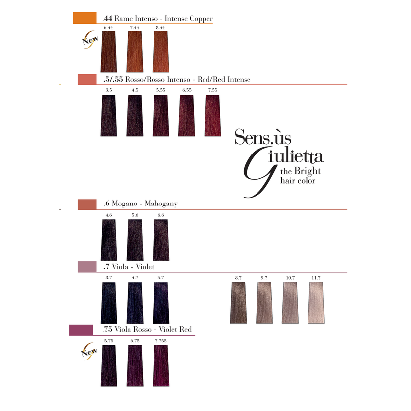 Složení přípravku Sens.ùs Giulietta se vyznačuje perfektní krycí schopností, dlouhodobou trvanlivostí a barvami které jsou nepřekonatelné díky vysokému brilantnímu jasu. Tento nově vyvinutý produkt je výsledkem neustálého výzkumu v oblasti kosmetické trichologie a představuje nejmodernější odpověď na požadavek optimální rovnováhy a zdokonalení péče o vlasy a vlasovou pokožku. Slouží na uspokojení požadavků stále více globalizované společnosti se stále vyššími a náročnějšími požadavky.