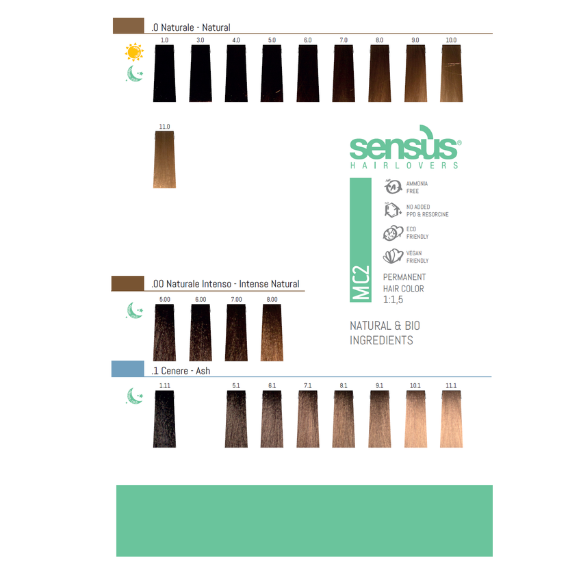 Škála barev značky SENS.US MC2 se nyní skládá ze 94 barevných odstínů, ale vzhledem k tomu, že se tyto krémy mohou snadno vzájemně mísit je možnost barev daleko širší.