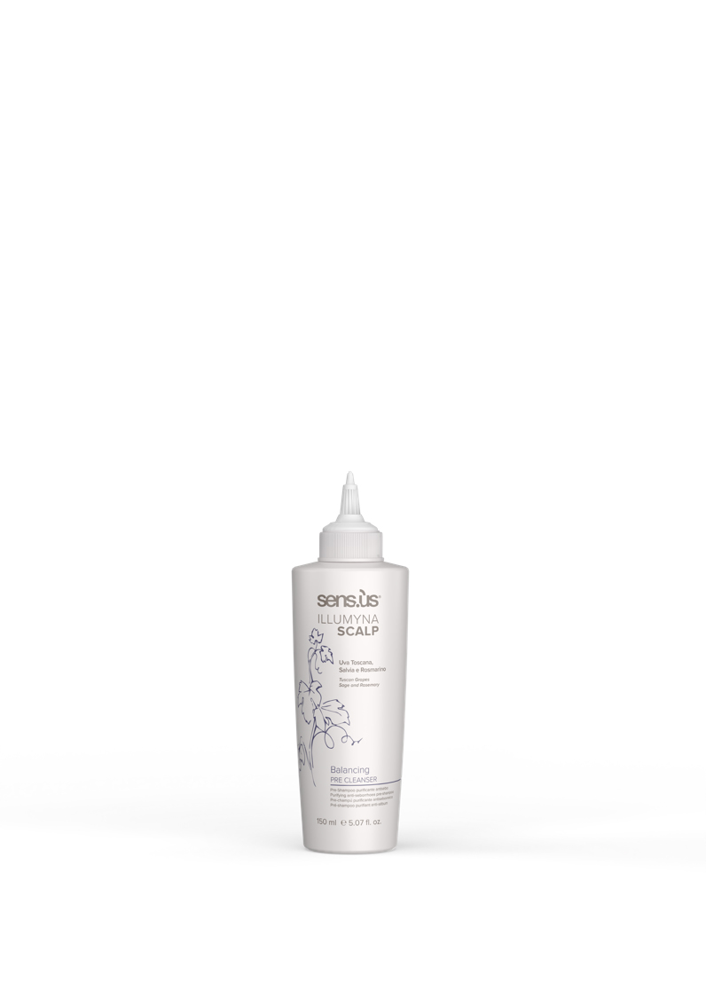Sens.us Illumyna Scalp Balancing Pre Cleanser je přípravek, který se používá před šamponováním. Účinně zabraňuje seboree. Je obohacen o výtažky z toskánských hroznů, šalvěj a rozmarýn. Ideální pro tenké a mastné vlasy. Toskánské hrozny mají antioxidační účinky. Šalvěj reguluje tvorbu kožního mazu, poskytuje vlasům sílu, hydrataci a dodává jim přirozený lesk. Šalvěj napomáhá zklidnit podrážděnou vlasovou pokožku a stimuluje růst vlasů. Rozmarýn má zklidňující a antioxidační účinky. Posiluje vlasová vlákna od kořínků. Zamezuje svědění pokožky hlavy a eliminuje tvorbu lupů.