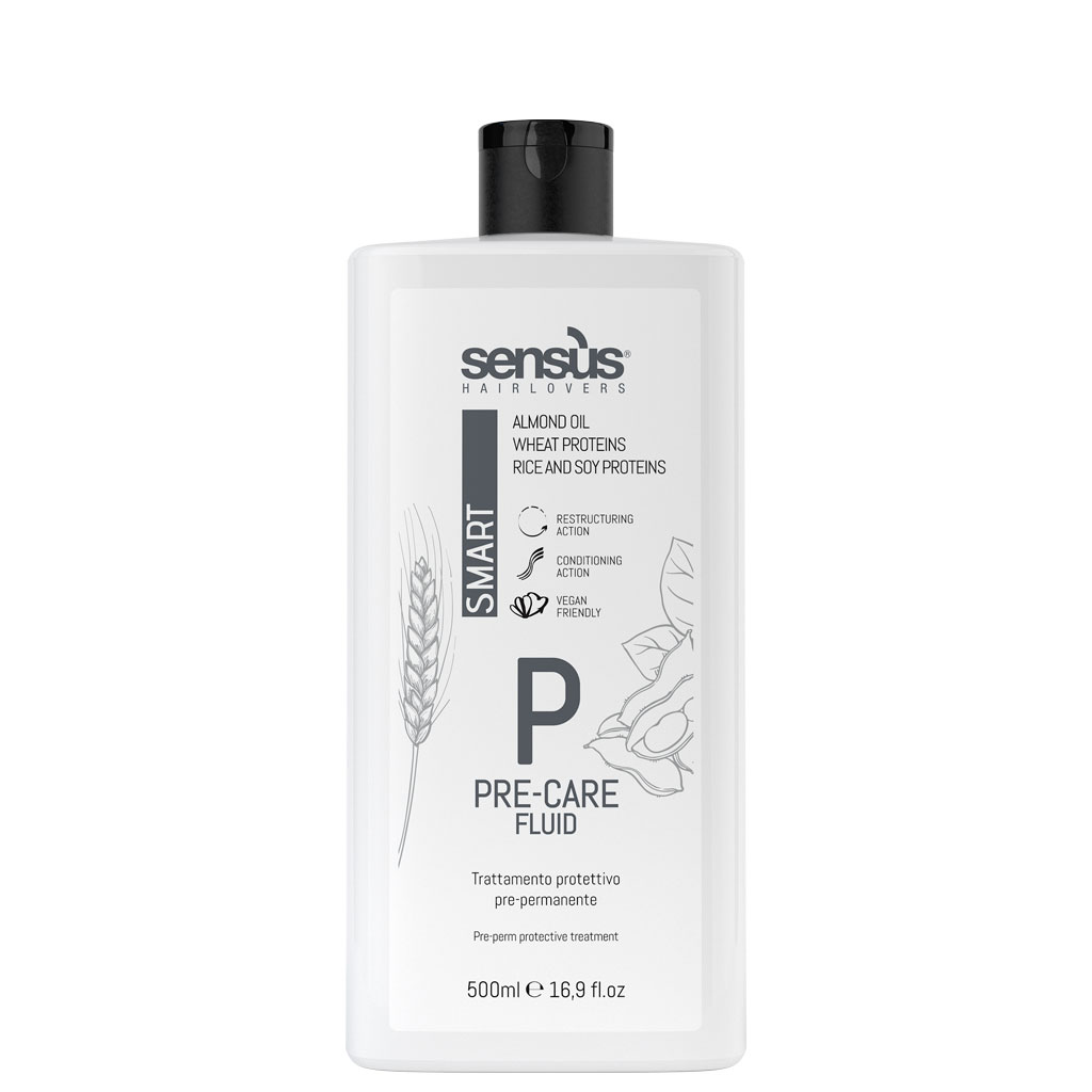 Sensus Smart Pre-Care Fluid je ošetření před trvalou ondulací. Ochranná a restrukturalizační emulze, která obnovuje keratinovou strukturu vlasů a také poskytuje vynikající ochranu pro citlivé vlasy. Obsahuje mandlový olej, pšenici a sójové proteiny.