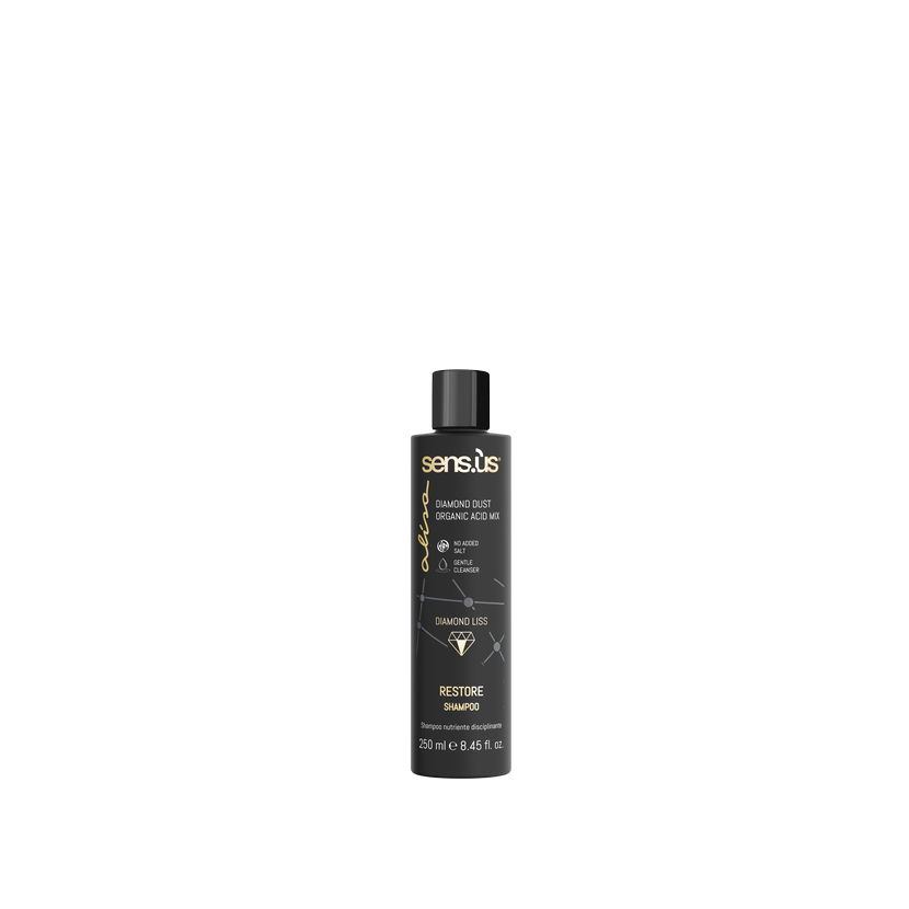 Sensus Alisa Restore Shampoo je vyživující šampon s extraktem z diamantů, bohatý na polykyseliny a vitamín C. Zkrotí vlasy a je ideálním udržovacím přípravkem pro ošetření ALISA. Odstraňuje krepatění a zanechává vlasy jemné, hedvábné a poddajné. Mikrokrystaly diamantového prachu vlasy rozzáří a dodá jim oslňující lesk. Vitamín C pečuje o suché a poškozené vlasy a chrání je před škodlivým slunečním zářením a volnými radikály. Revitalizuje vlasové vlákno po celé délce a chrání vlasy před lámáním a třepením.