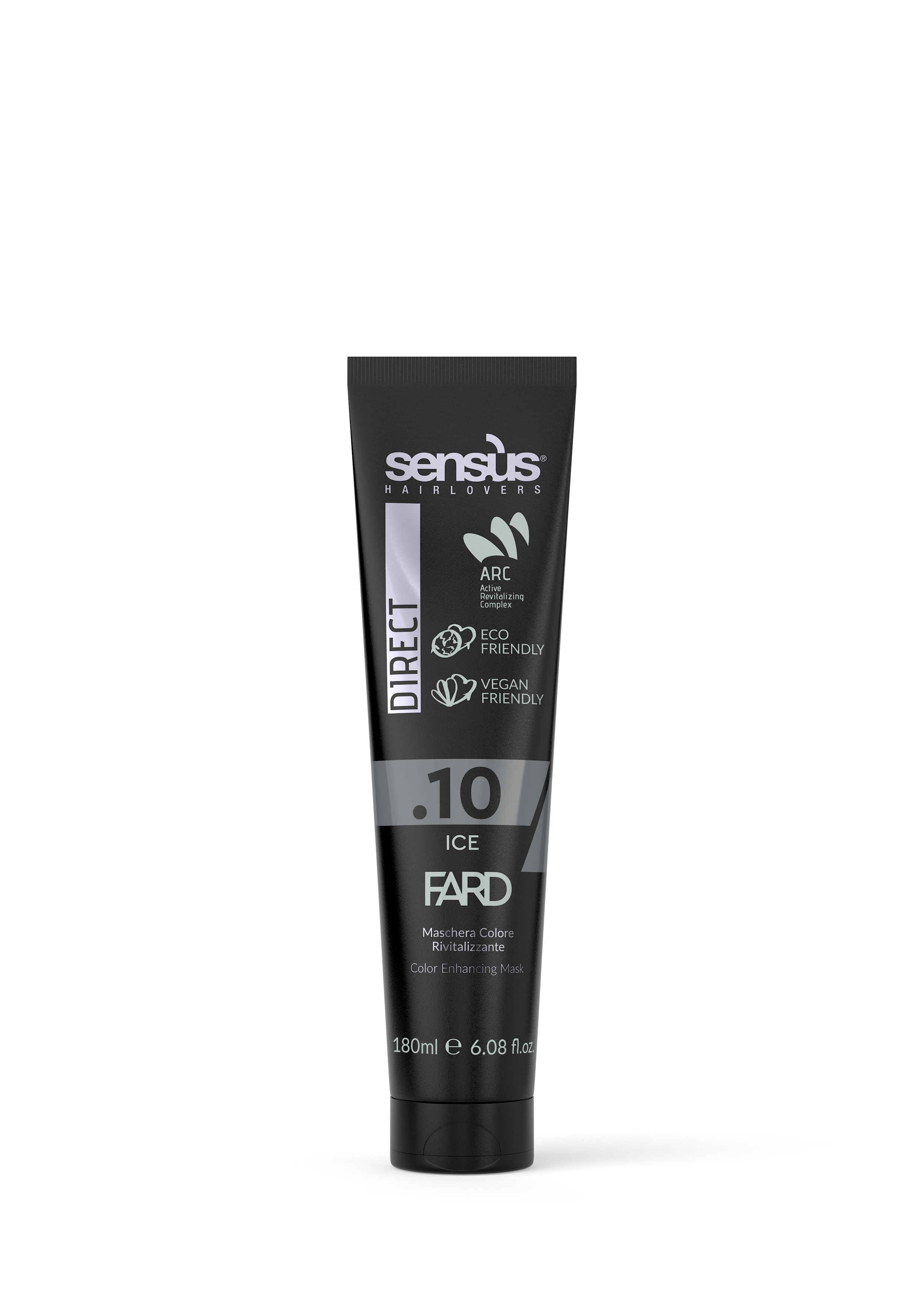 Sensus Direct Fard .10 Ice je barevná rozjasňující maska na vlasy obohacena o ARC (aktivní revitalizační komplex), rostlinný keratin, kolagen a elastan. Hloubkově vlasy vyživuje, regeneruje a dodává jim lesk. Tato maska zaručí perfektní oživení barvy a regeneraci barvených i přírodních vlasů.