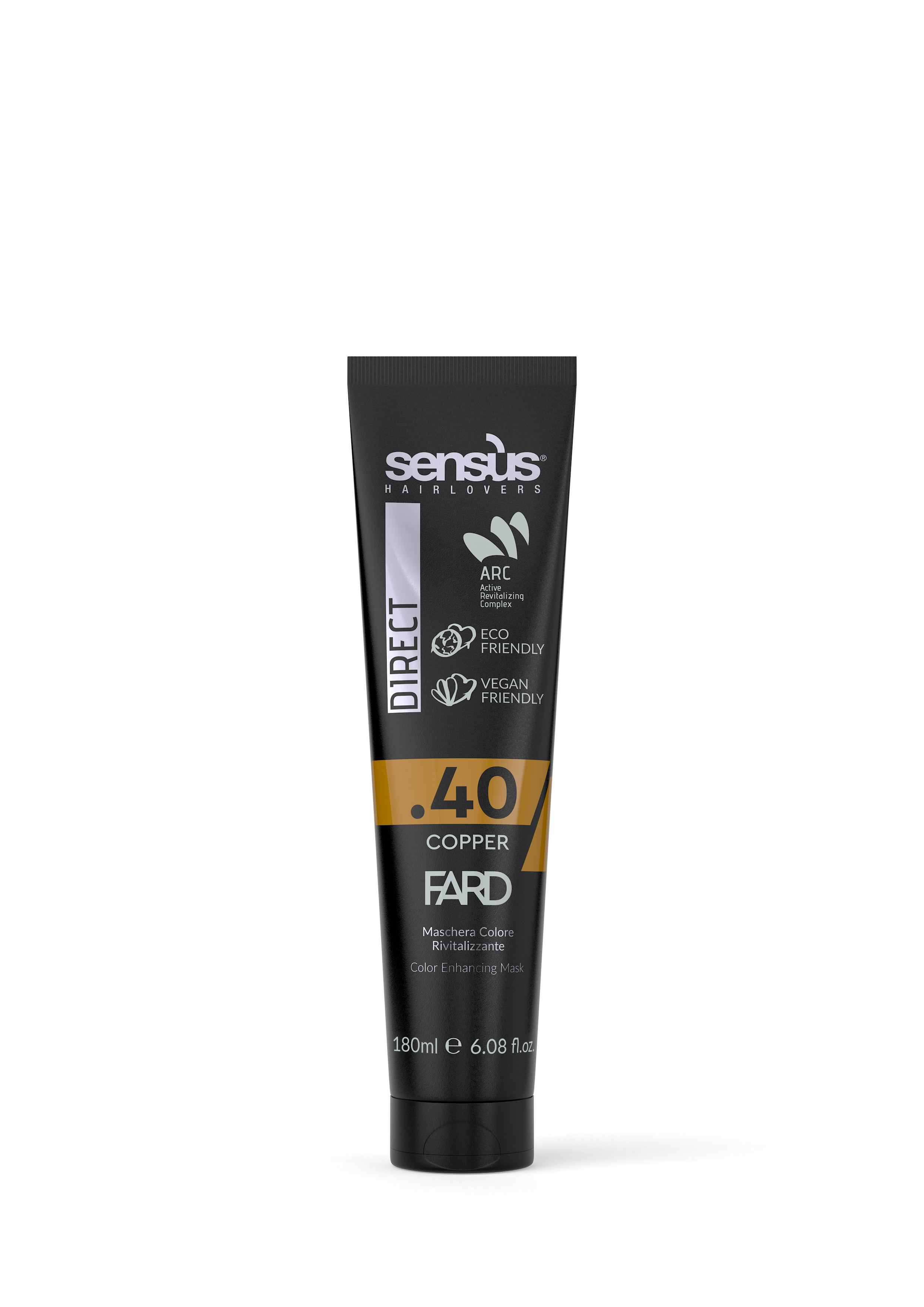 Sensus Direct Fard .40 Copper je barevná rozjasňující maska na vlasy obohacena o ARC (aktivní revitalizační komplex), rostlinný keratin, kolagen a elastan. Hloubkově vlasy vyživuje, regeneruje a dodává jim lesk. Tato maska zaručí perfektní oživení barvy a regeneraci barvených i přírodních vlasů.