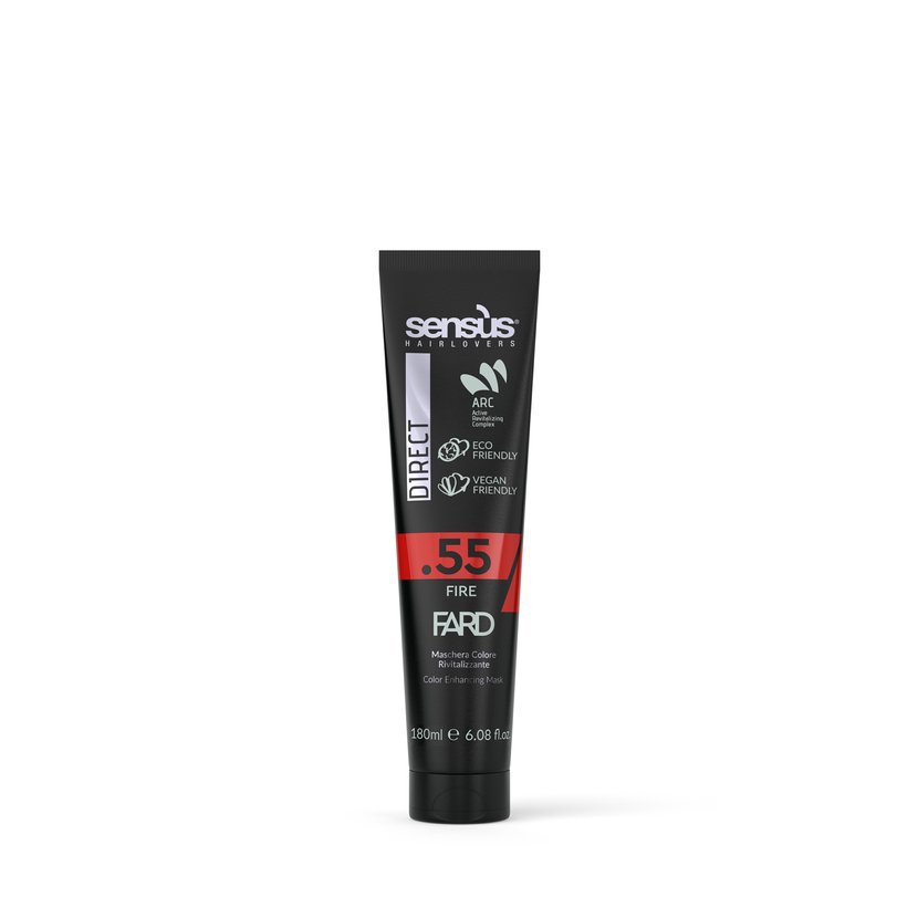 Sensus Direct Fard .55 Fire je barevná rozjasňující maska na vlasy obohacena o ARC (aktivní revitalizační komplex), rostlinný keratin, kolagen a elastan. Hloubkově vlasy vyživuje, regeneruje a dodává jim lesk. Tato maska zaručí perfektní oživení barvy a regeneraci barvených i přírodních vlasů.