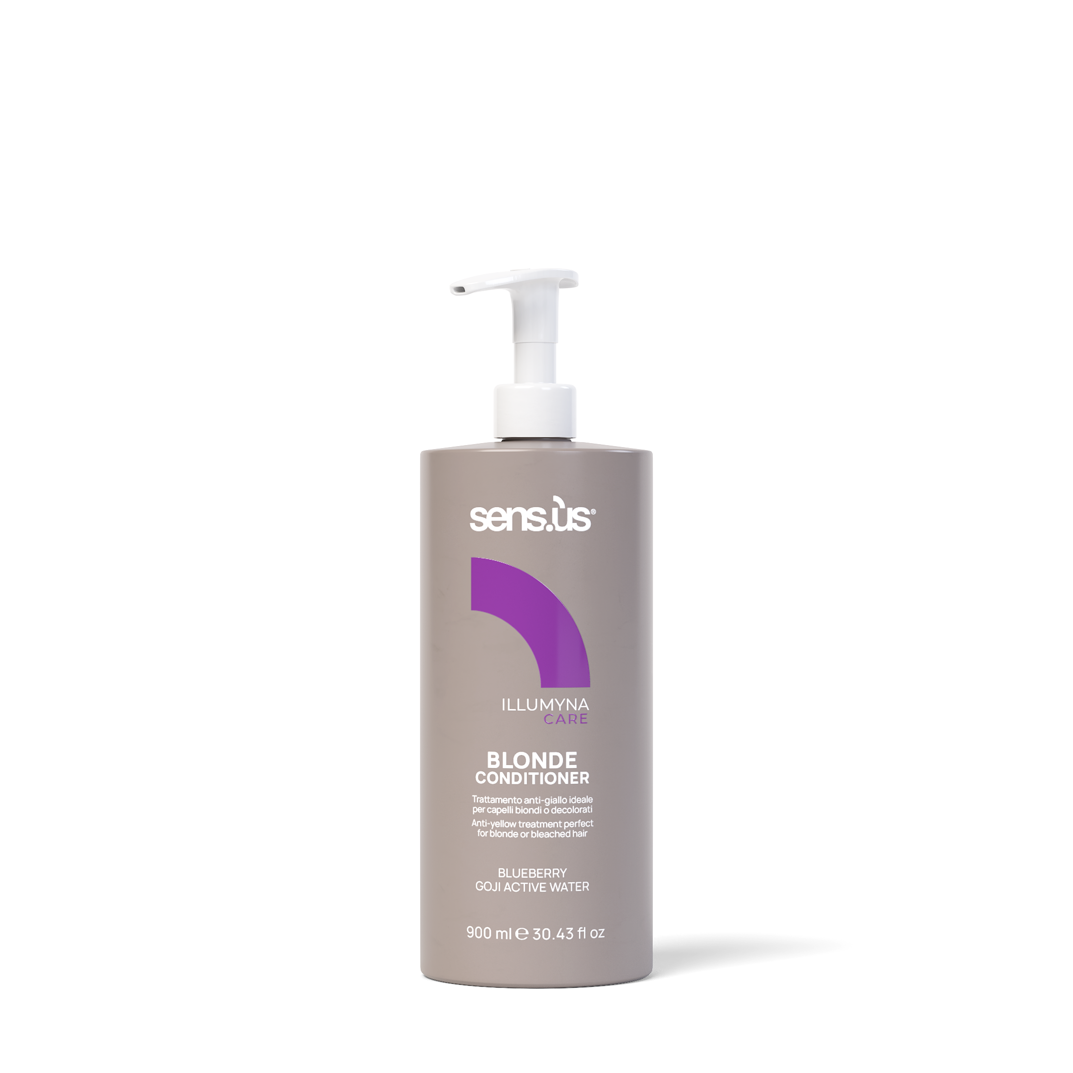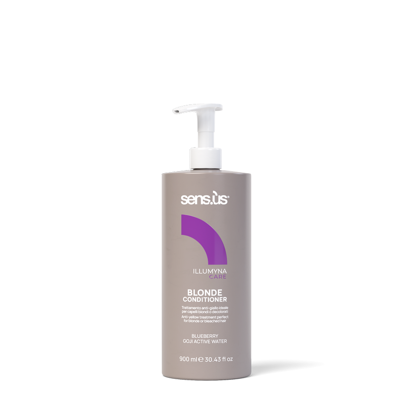Sensus Illumyna Care Blonde Conditioner je kondicionér proti žloutnutí s obsahem aktivní vody goji, borůvek, hedvábných a sójových proteinů. Vhodný pro odbarvené, melírované blond nebo šedé vlasy. Jeho složení neutralizuje nežádoucí nažloutlé odlesky a dodává vlasům lesk a hebkost. Borůvky jsou známé svým vysokým obsahem vitaminů A, B a C a antioxidantů, které jsou klíčem k udržení zářivých a živých blond vlasů. Obsahují antokyaninové pigmenty, které mají „protižluté“ vlastnosti. Aktivní voda z goji je vzácná složka péče o vlasy, která je hloubkově vyživuje a hydratuje. Tato antioxidační voda získaná z nálevu z bobulí goji je plná vitamínů, zanechává vlasy hedvábné a zářivé a zároveň je chrání před vnějšími agresory. Hedvábné proteiny se získávají přímo z čištění hedvábných kokonů a jsou klíčovou složkou při posilování vlasového stvolu a omezování třepení a lámání vlasů. Hloubkově hydratují vlasy, zanechávají je hebké a poddajné a vytvářejí hladký povrch, který zvyšuje lesk. Sójové proteiny jsou klíčové pro posílení a hydrataci odbarvených vlasů. Vytvářejí ochranný film, který vyhlazuje kutikuly, zvyšuje lesk a zanechává vlasy poddajnější. Jejich antioxidační vlastnosti také pomáhají předcházet stárnutí vlasů.