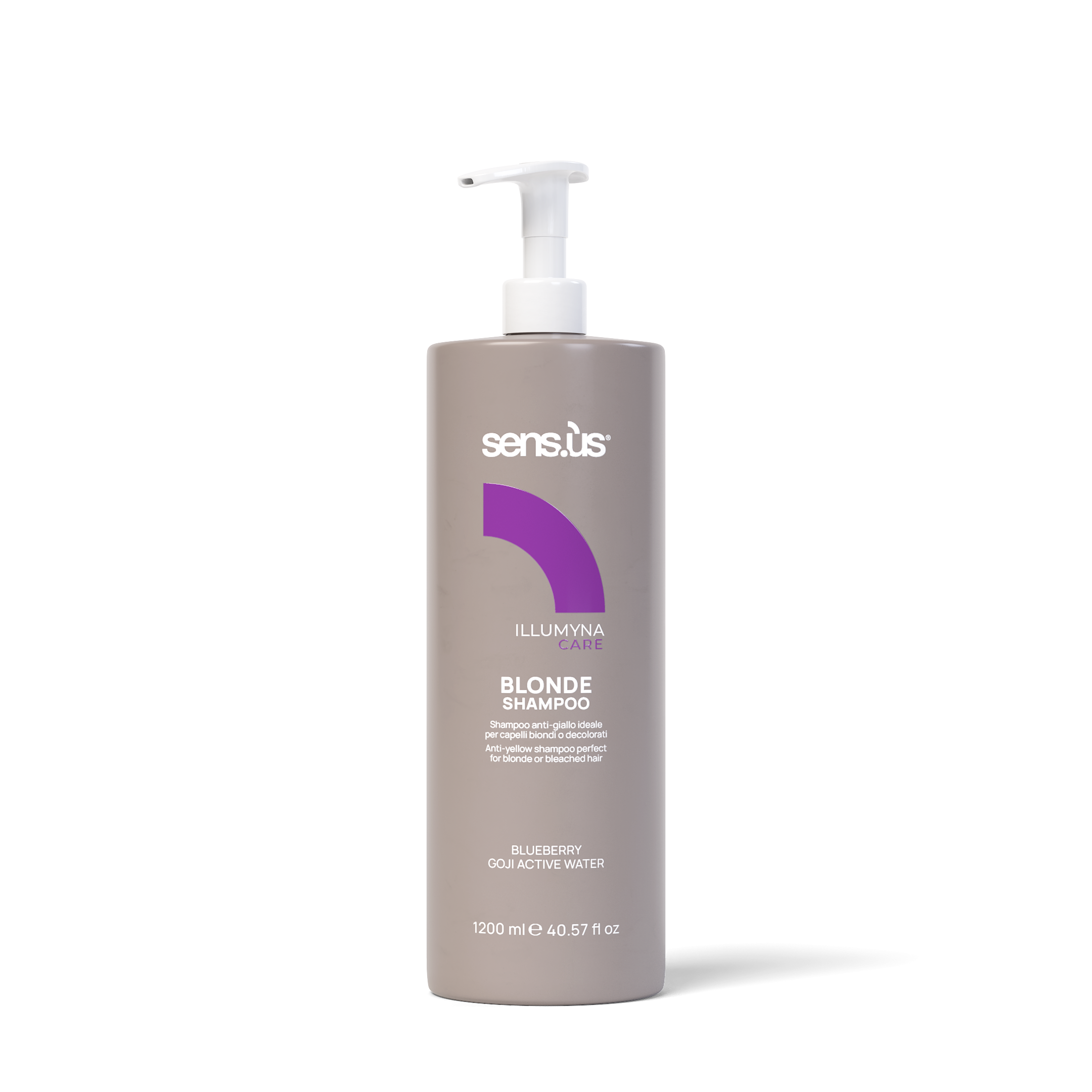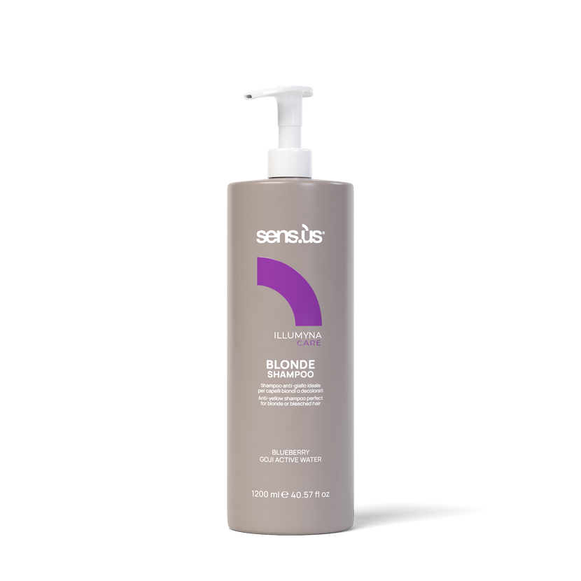 Sensus Illumyna Care Blonde Shampoo je šampon proti žloutnutí a obsahem ideální pro blond nebo zesvětlené vlasy. S aktivní vodou goji, borůvkami a hedvábnými a sójovými proteiny. Neutralizuje nežádoucí mosazné tóny a zvyšuje lesk blond vlasů. Borůvky jsou známé svým vysokým obsahem vitaminů A, B a C a antioxidantů, které jsou klíčem k udržení zářivých a živých blond vlasů. Obsahují antokyaninové pigmenty, které mají „protižluté“ vlastnosti. Aktivní voda z goji je vzácná složka péče o vlasy, která je hloubkově vyživuje a hydratuje. Tato antioxidační voda získaná z nálevu z bobulí goji je plná vitamínů, zanechává vlasy hedvábné a zářivé a zároveň je chrání před vnějšími agresory. Hedvábné proteiny se získávají přímo z čištění hedvábných kokonů a jsou klíčovou složkou při posilování vlasového stvolu a omezování třepení a lámání vlasů. Hloubkově hydratují vlasy, zanechávají je hebké a poddajné a vytvářejí hladký povrch, který zvyšuje lesk. Sójové proteiny jsou klíčové pro posílení a hydrataci odbarvených vlasů. Vytvářejí ochranný film, který vyhlazuje kutikuly, zvyšuje lesk a zanechává vlasy poddajnější. Jejich antioxidační vlastnosti také pomáhají předcházet stárnutí vlasů.