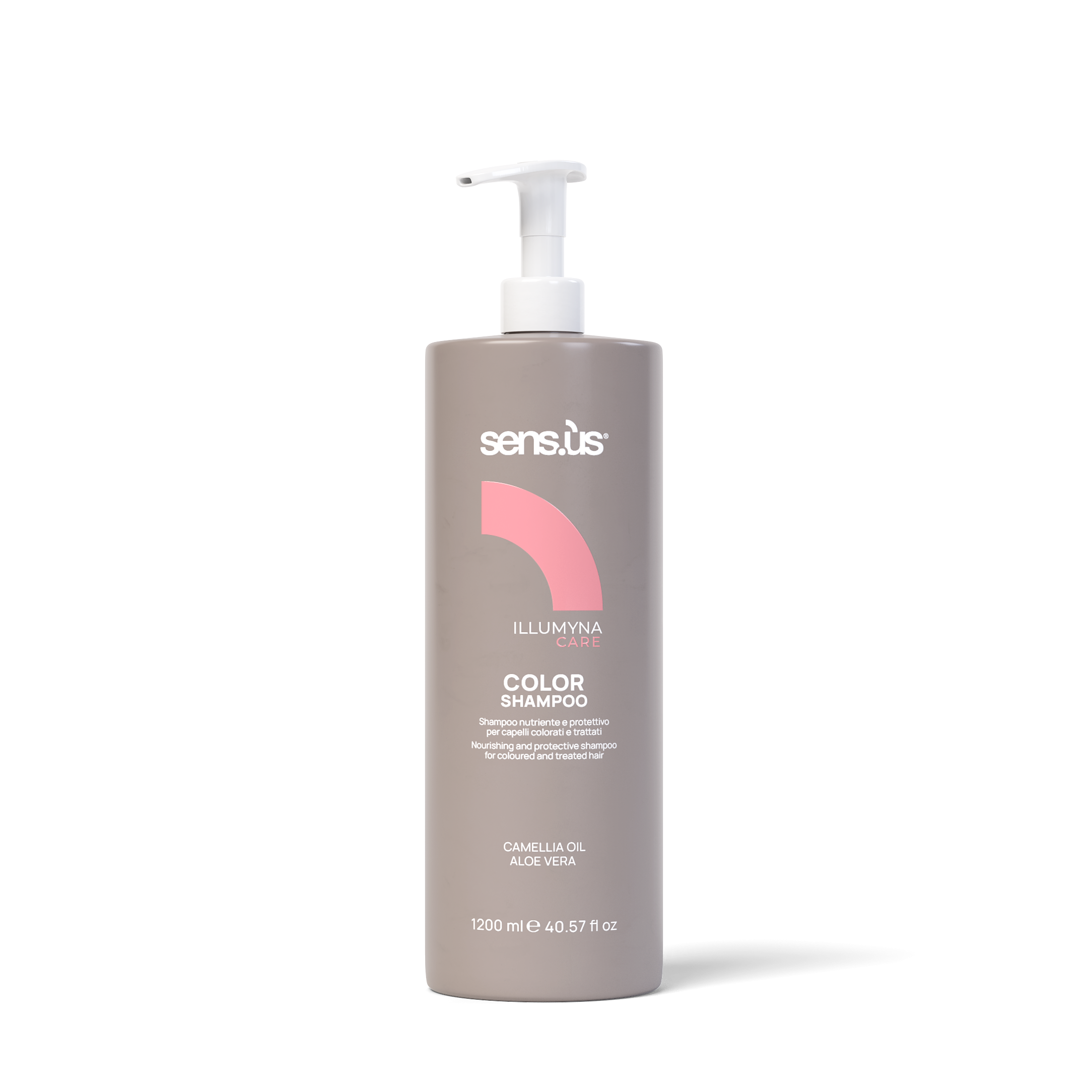 Sensus Illumyna Care Color Shampoo je vyživující a ochranný šampon pro barvené a chemicky ošetřené vlasy. S olejem z kamélie a aloe vera s rozjasňujícím účinkem pro udržení barvy. Jemně čistí vlasy, zanechává je zářivé a udržuje stálost barvy. Olej z kamélie je bohatý na vitamíny A a E poskytuje hlubokou hydrataci a udržuje vlasy hedvábně jemné. Jeho antioxidační vlastnosti chrání barvu vlasů před poškozením okolním prostředím a udržují ji zářivou. Se silnými vyživujícími a hydratačními vlastnostmi je aloe vera klíčovou složkou, pokud jde o péči o barvené a chemicky ošetřené vlasy. Bohatý na vitamíny, zvyšuje lesk a pružnost, zatímco jeho zklidňující vlastnosti zmírňují podrážděnou pokožku hlavy.