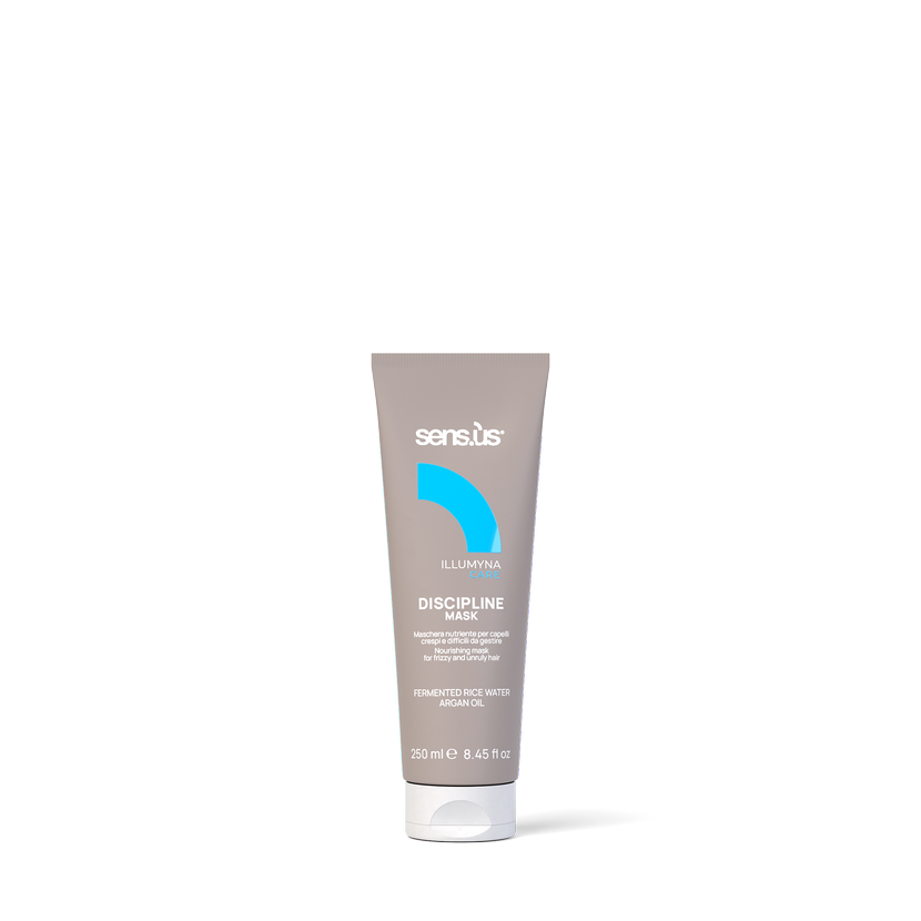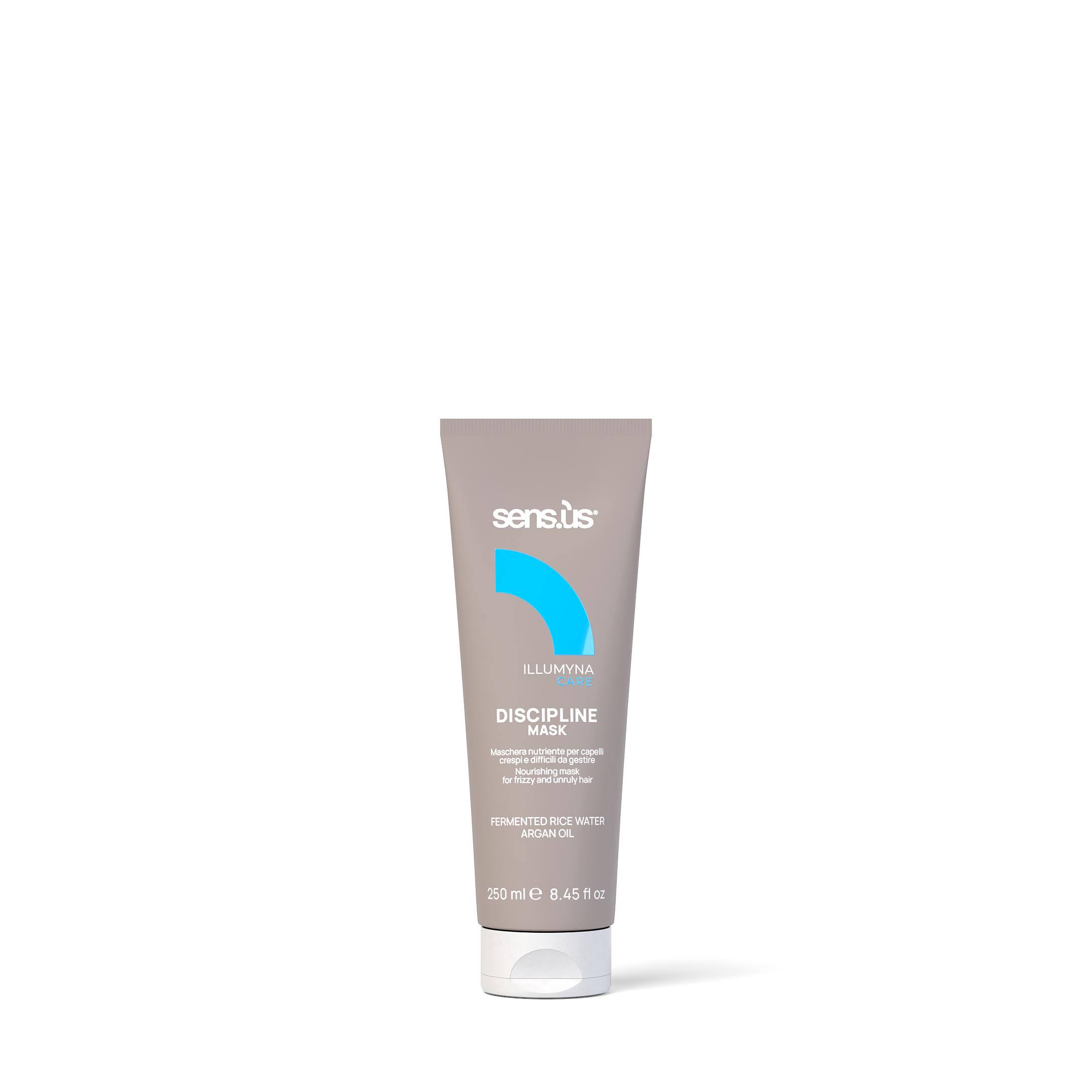 Sensus Illumyna Care Discipline Mask je výživná maska pro krepaté a nepoddajné vlasy. S fermentovanou rýžovou vodou, konopným olejem, avokádem a arganem. Ideální pro suché a krepaté vlasy. Vyživuje a chrání vlasy. Po použití jsou vlasy jemné, lesklé a poddajné. Fermentovaná rýžová voda je cenným spojencem pro krepaté, obtížně upravitelné a často myté vlasy. Rýže, známá pro své blahodárné vlastnosti, po namočení ve vodě uvolňuje aminokyseliny, vitamíny a proteiny, které pomáhají zlepšit hebkost a lesk. Voda získaná tímto procesem díky svému mírně kyselému pH obnovuje rovnováhu pokožky hlavy a zabraňuje podráždění, díky čemuž jsou vlasy ovladatelnější a snadněji se rozčesávají. Konopný olej hloubkově vyživuje a hydratuje. Restrukturalizační účinek tohoto oleje je silným spojencem v boji proti krepatění, vytváří také ochrannou bariéru, která pomáhá předcházet ztrátě vlhkosti a podporuje růst silných vlasů. Avokádový olej je bohatý na vitamíny a antioxidanty. Proniká hluboko do vlasového vlákna a napravuje poškození, které vede ke krepatění a suchosti vlasů. Přestože je tento olej bohatý na tuky, jeho konzistence je velmi lehká, díky čemuž jsou vlasy jemné a pružné, aniž by je zatěžoval. Arganový olej díky vysokému obsahu antioxidantů, vitamínu E a omega 3 nejen hloubkově vyživuje, ale také stimuluje přirozený lesk vlasů, díky čemuž jsou viditelně zdravější.