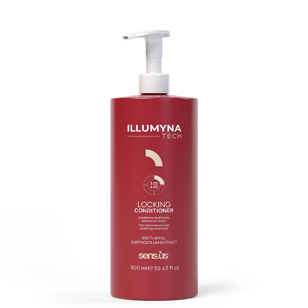 Sensus Illumyna Tech Locking Conditioner je kondicionér po technických úkonech. Okyselující kondicionér pro všechny typy vlasů, ideální po všech technických úkonech. Kondicionér je obohacený o erythritol (cukr) a výtažek ze Zanthoxylu. Usnadňuje rozčesávání a obnovuje rovnováhu pH.