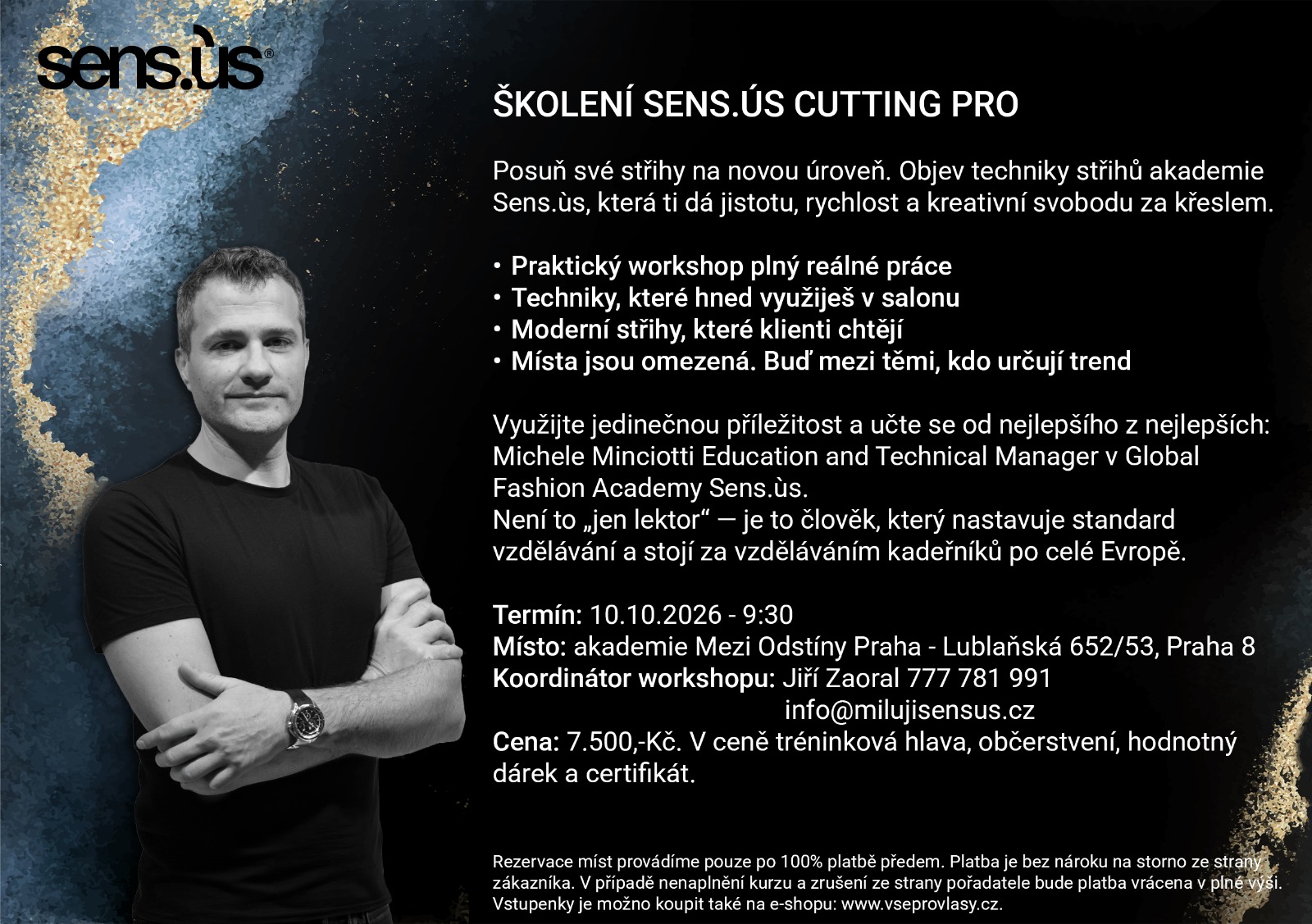 Využijte jedinečnou příležitost a učte se od nejlepšího z nejlepších: Michele Minciotti Education and Technical Manager v Global Fashion Academy Sens.ùs. Není to „jen lektor“ — je to člověk, který nastavuje standard vzdělávání a stojí za vzděláváním kadeřníků po celé Evropě. Nyní v Praze.