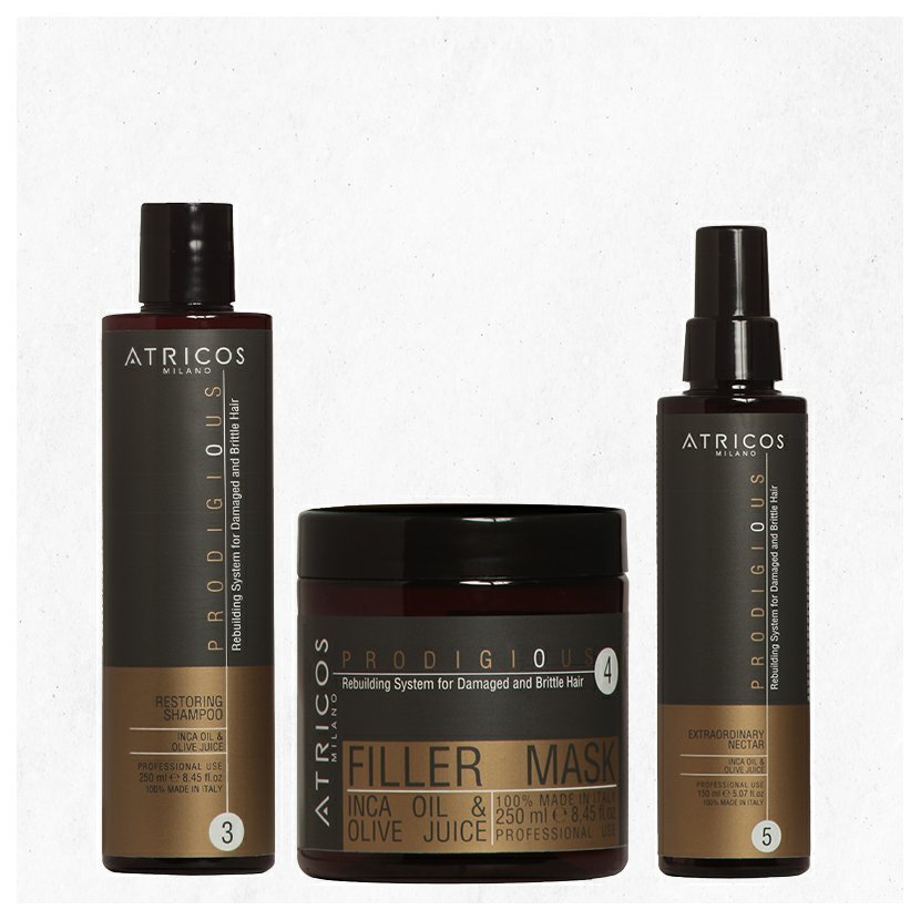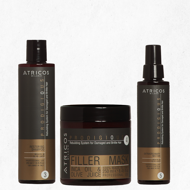 Prodigious Rebuilding System je systém obnovy vlasů na rostlinné bázi určený k léčbě různých úrovní a stupňů poškození vlasového vlákna. Jeho aktivní složky, jako je Incký olej, výtažek z oliv, fytokeratin a zesíťovaná kyselina hyaluronová, nabízejí výjimečné a dlouhodobé výsledky.