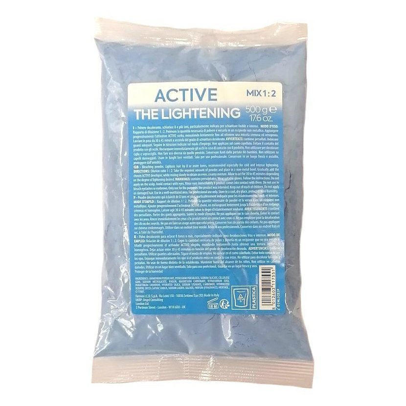 Modrý bezprašný melírovací prášek, který dokáže vlasy zesvětlit až o 8 tónů.
